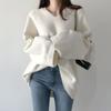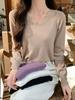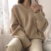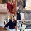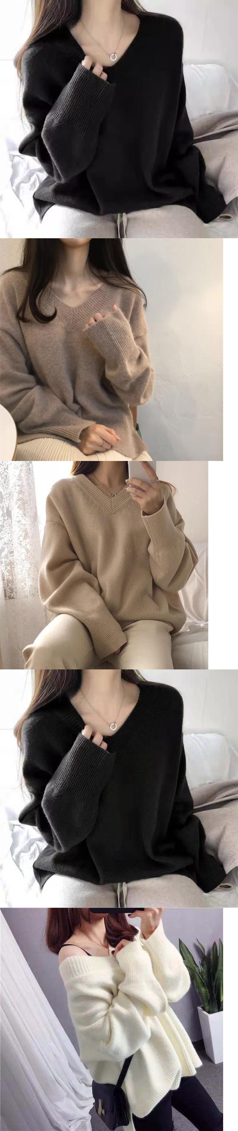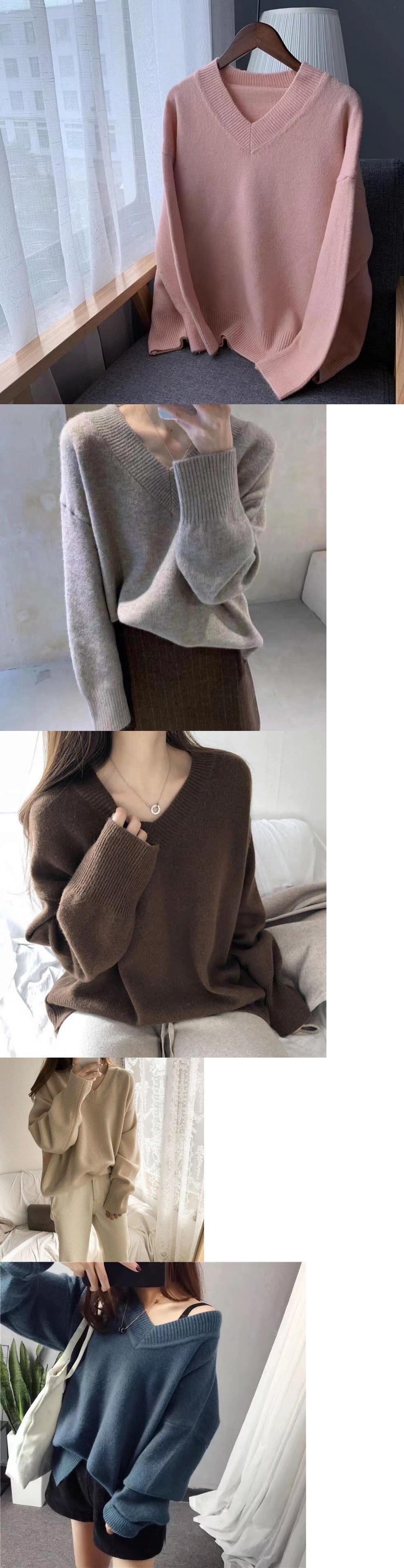 Suéter de Cuello en V para Mujer Jersey Holgado Estilo Perezoso Estilo Coreano 2025 Primavera y Otoño Nuevo Top Caliente Camisa Tejida Ropa Exterior