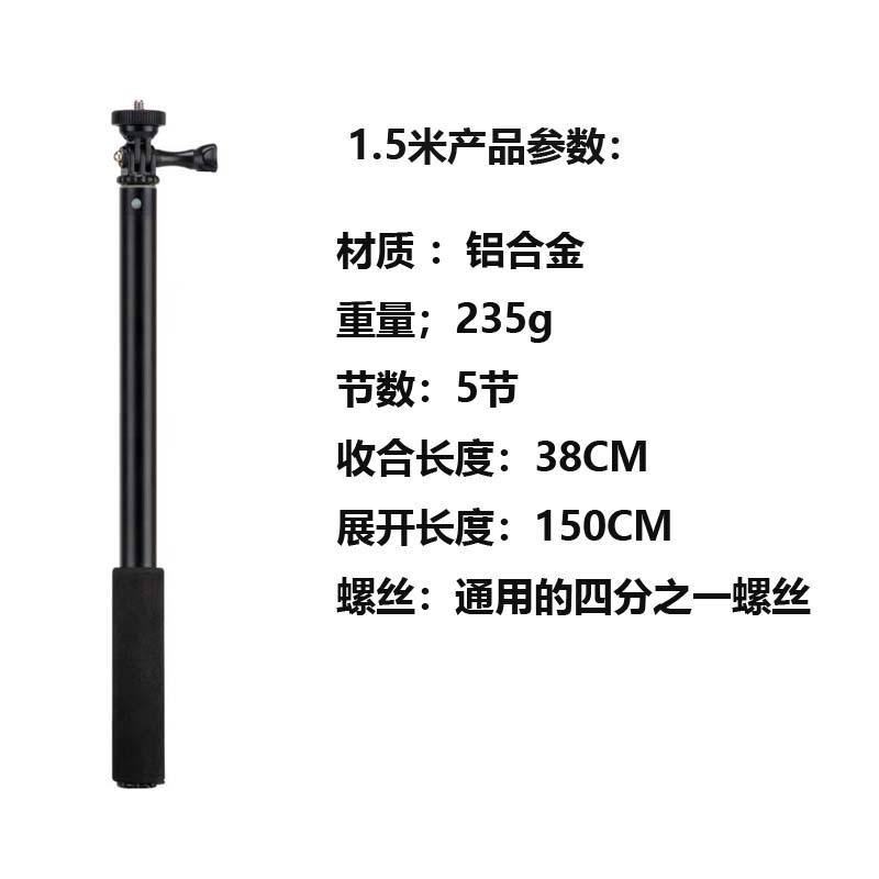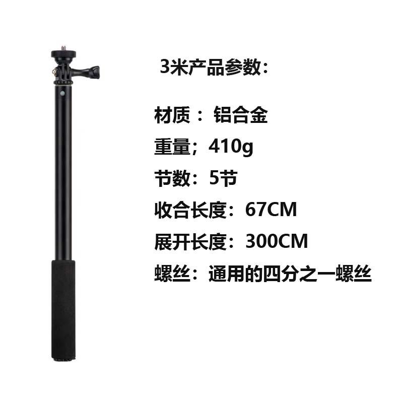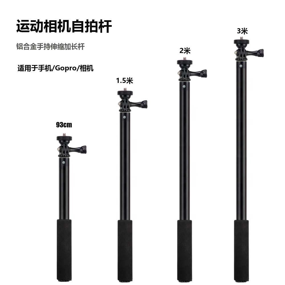 Venta al por mayor de stock 1.5/2/3 metros varilla de extensión extendida Gopro11 aleación de aluminio telescópica cámara deportiva palo selfie