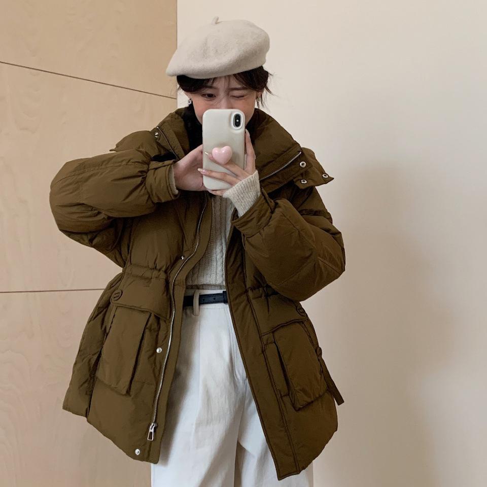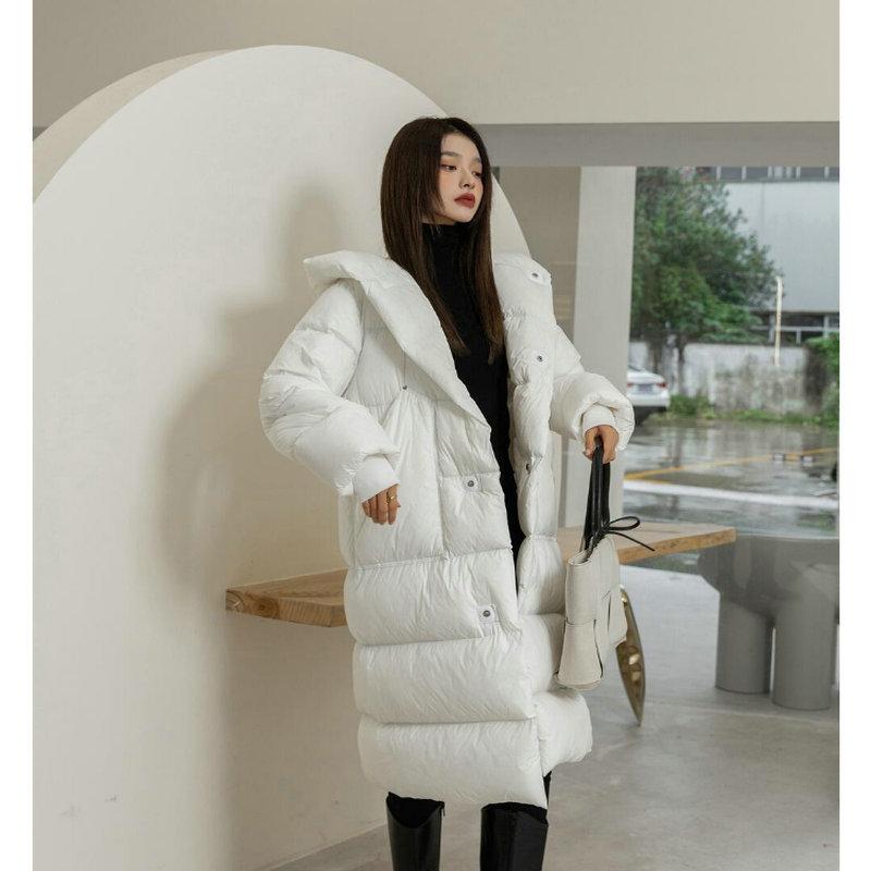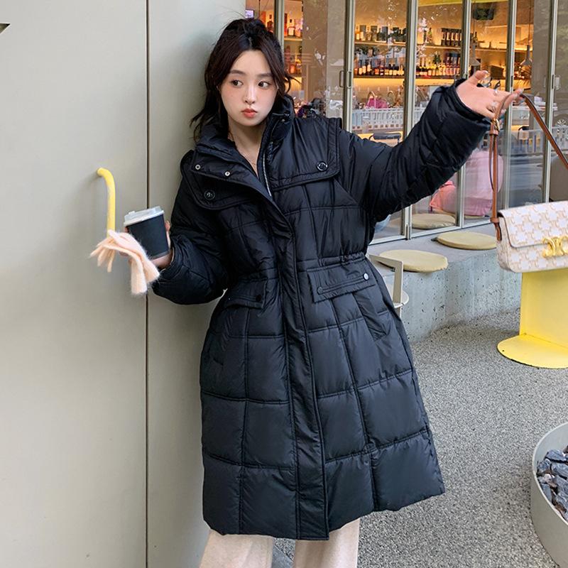 Liquidación chamarra de plumón larga para mujer de alta calidad invierno larga plumón de pato invierno cintura delgada Pinghu mayoreo