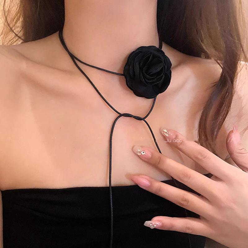 Collar Cadena de Flor Blanco y Negro Gargantilla Rosa Collar para el Cuello Collar Collarín para Mujer Cadena Clavícula Flor Camelia
