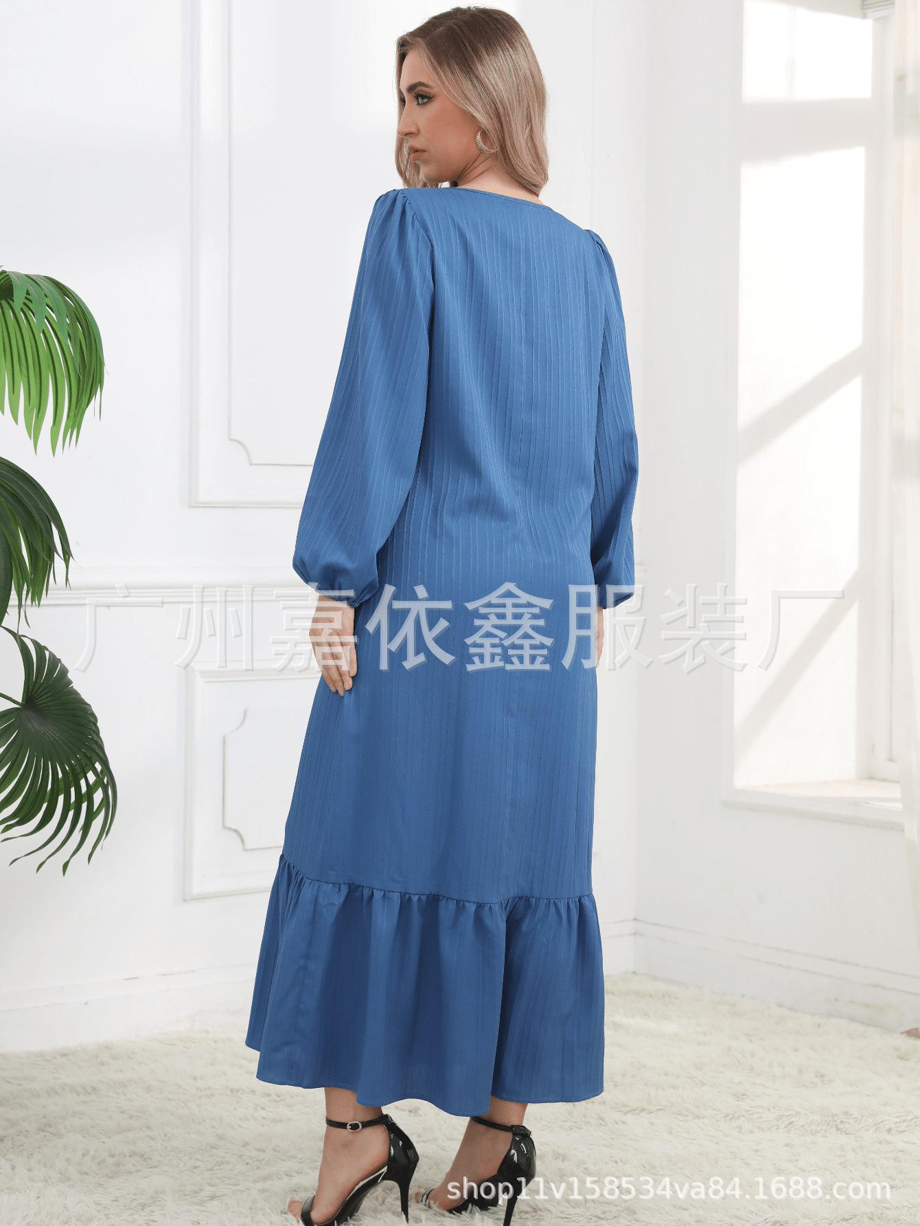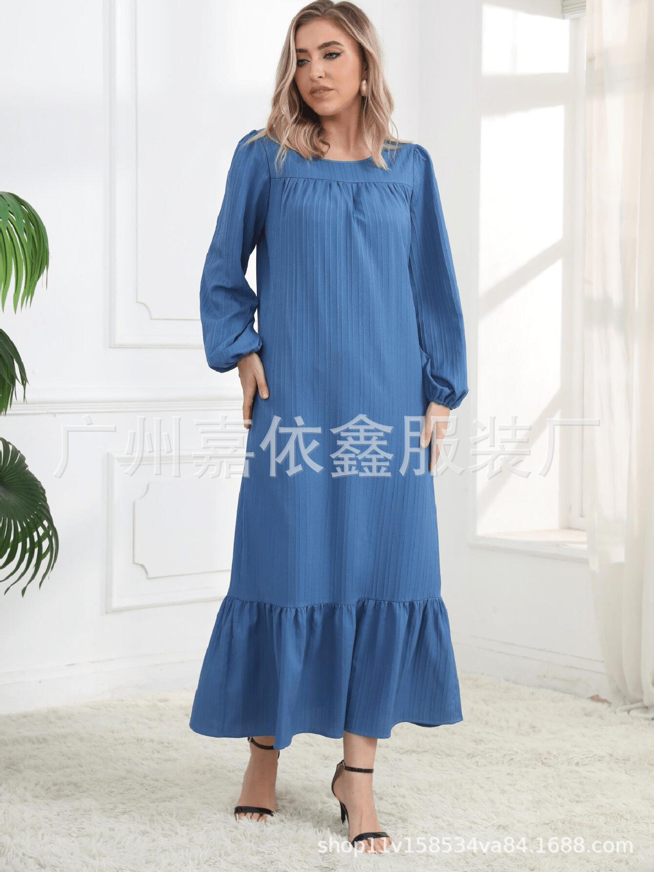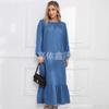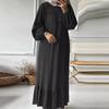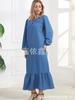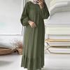 Vestido musulmán con mangas abullonadas y dobladillo con bolsillos vintage, primavera y otoño de 2024