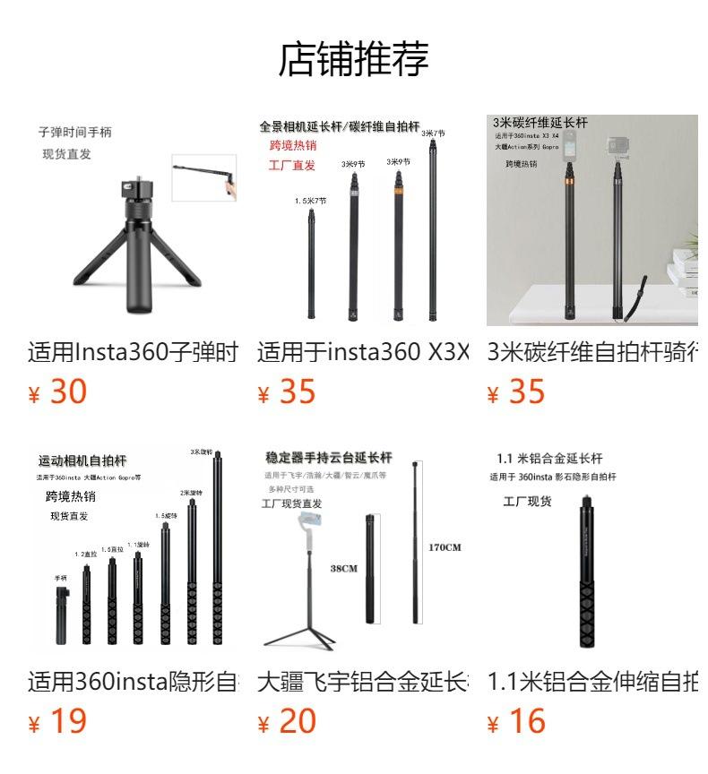 Tripod selfie stick, Rod + mobile phone clip, Gopro adapter