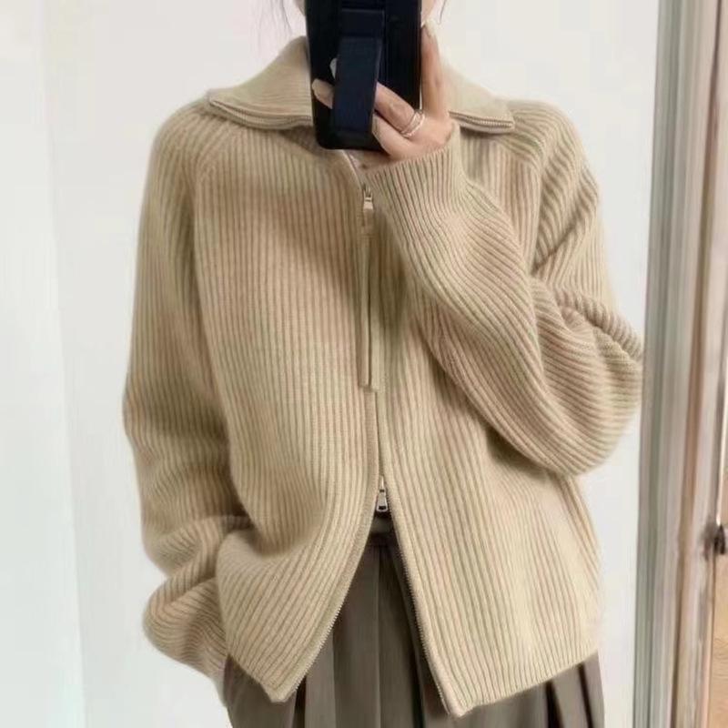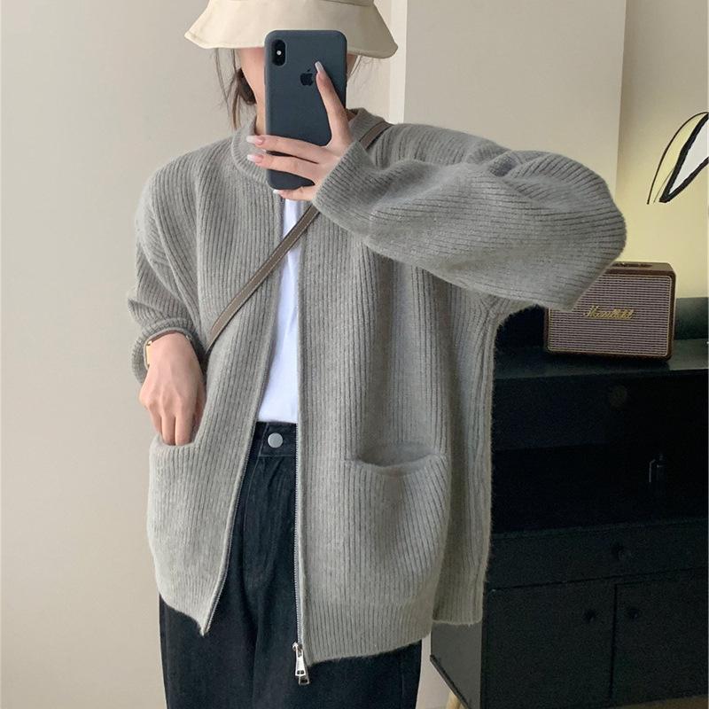 | |  | Cárdigan suéter de doble cremallera estilo coreano para mujer 2023 otoño e invierno nuevo estilo holgazán de alta gama chaqueta tejida de cuello redondoGran precio:¥51 |