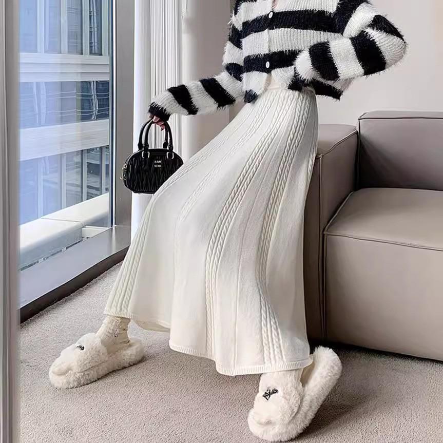 | |  | Falda tejida de cable otoño e invierno 2024 midi de cintura alta corte A con falda paraguas plisada delgada que cubre las caderasGran precio:¥42 |