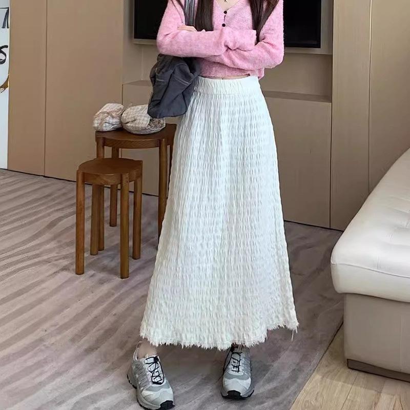 | |  | Falda tejida plisada texturizada 2024 primavera y otoño nuevo estilo drapeado reductor de edad cintura alta falda recta borde crudo falda línea AGran precio:¥43 |