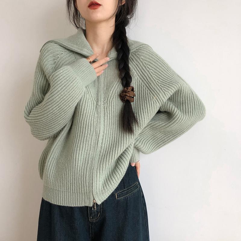 |  | Cárdigan de punto con cuello marinero versión coreana ropa de mujer 2024 otoño e invierno nuevo estilo estilo holgazán todo combina chamarra suéter con cremalleraGran precio:¥51 |