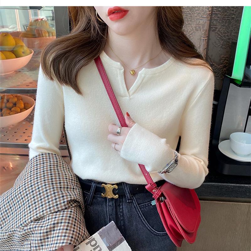 | |  | Camiseta básica de punto con cuello en V para mujer 2023 otoño nuevo estilo ropa interior suéter fino de punto versátil top suéter ajustado tendenciaGran precio:¥34 |
