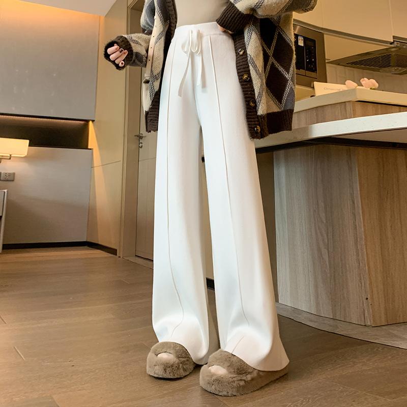 | |  | Pantalones de punto trenzado de alta calidad de pierna ancha estrecha para mujer 2024 nuevos pantalones casuales con caída de cintura alta pantalones rectos para fregarGran precio:¥45 |