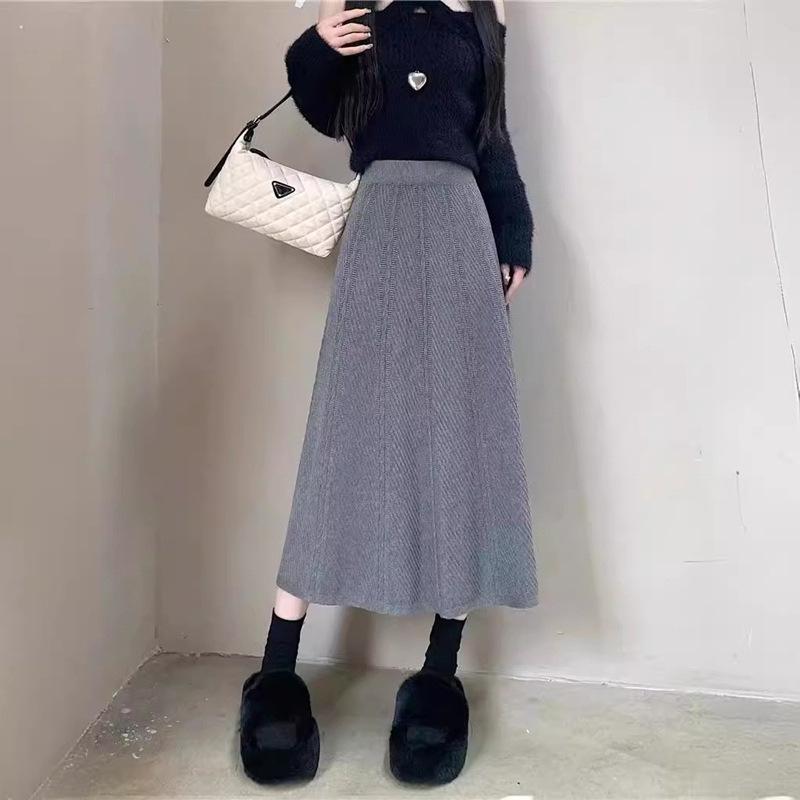 |  | Falda tejida acampanada estilo francés que reduce la edad 2024 otoño e invierno temperamento versátil falda paraguas retorcida cubre las caderas y te hace lucir delgada falda largaGran precio:¥40 |