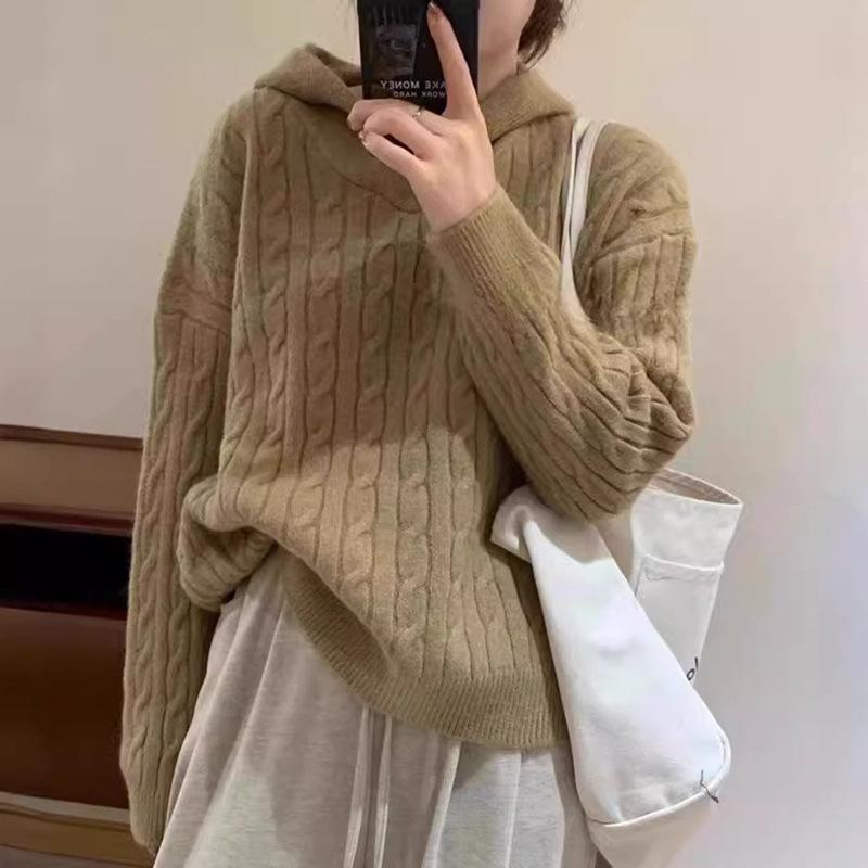 | |  | Suéter pulóver retorcido con capucha para mujer 2024 otoño e invierno nuevo retro japonés holgado casual versátil suéter de punto suéterGran precio:¥45 |