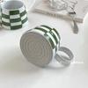 Wave-hand-painted cup green 350ml (slightly imperfect), Checkered-hand-painted cup blue 350ml (slightly imperf...