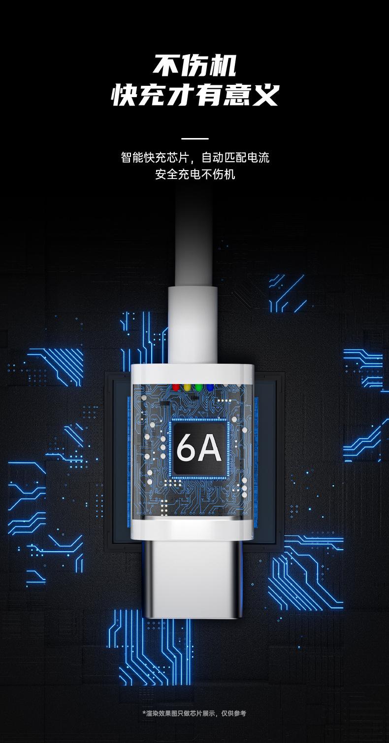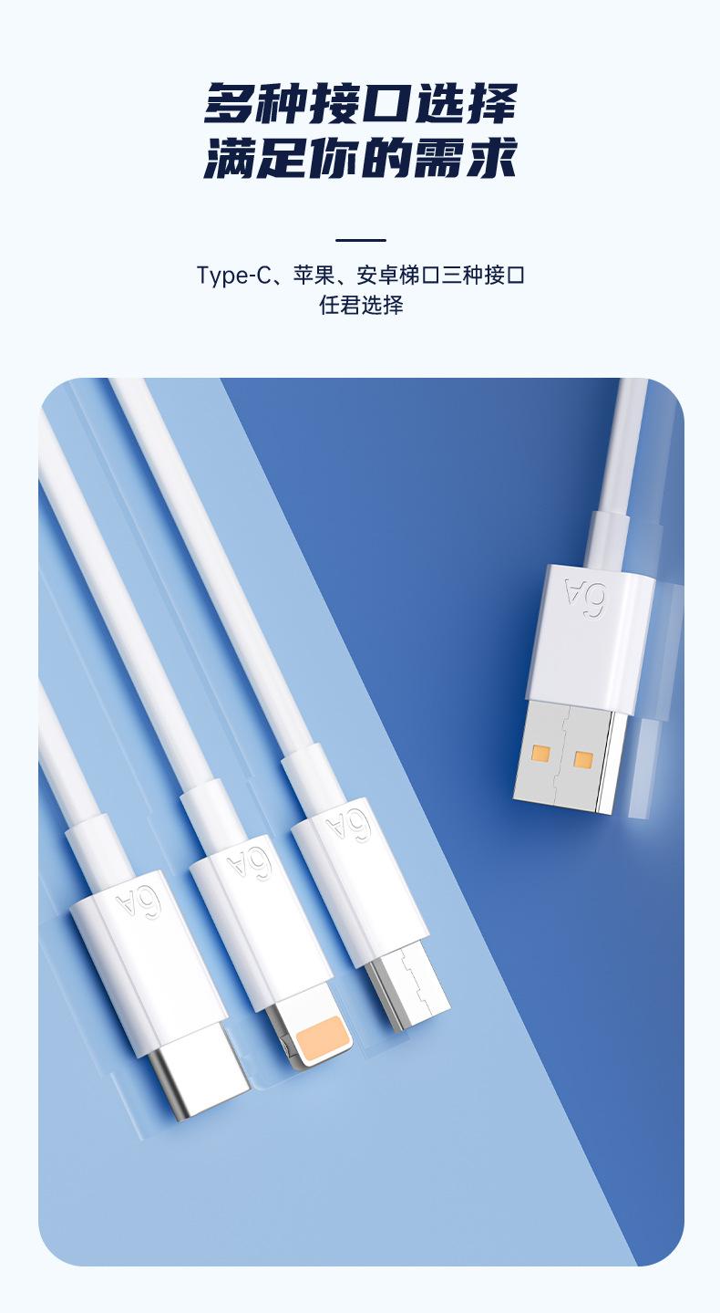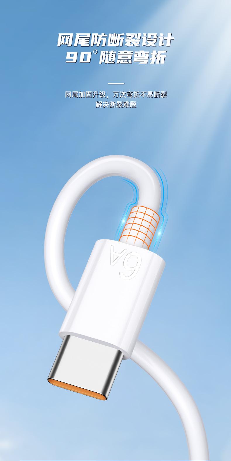 Cable de carga rápida tipo C de un solo cabezal con conector de datos de 6 A. El cable tipo C es adecuado para Huawei, Android y Apple, y su carga rápida es de 5 A.