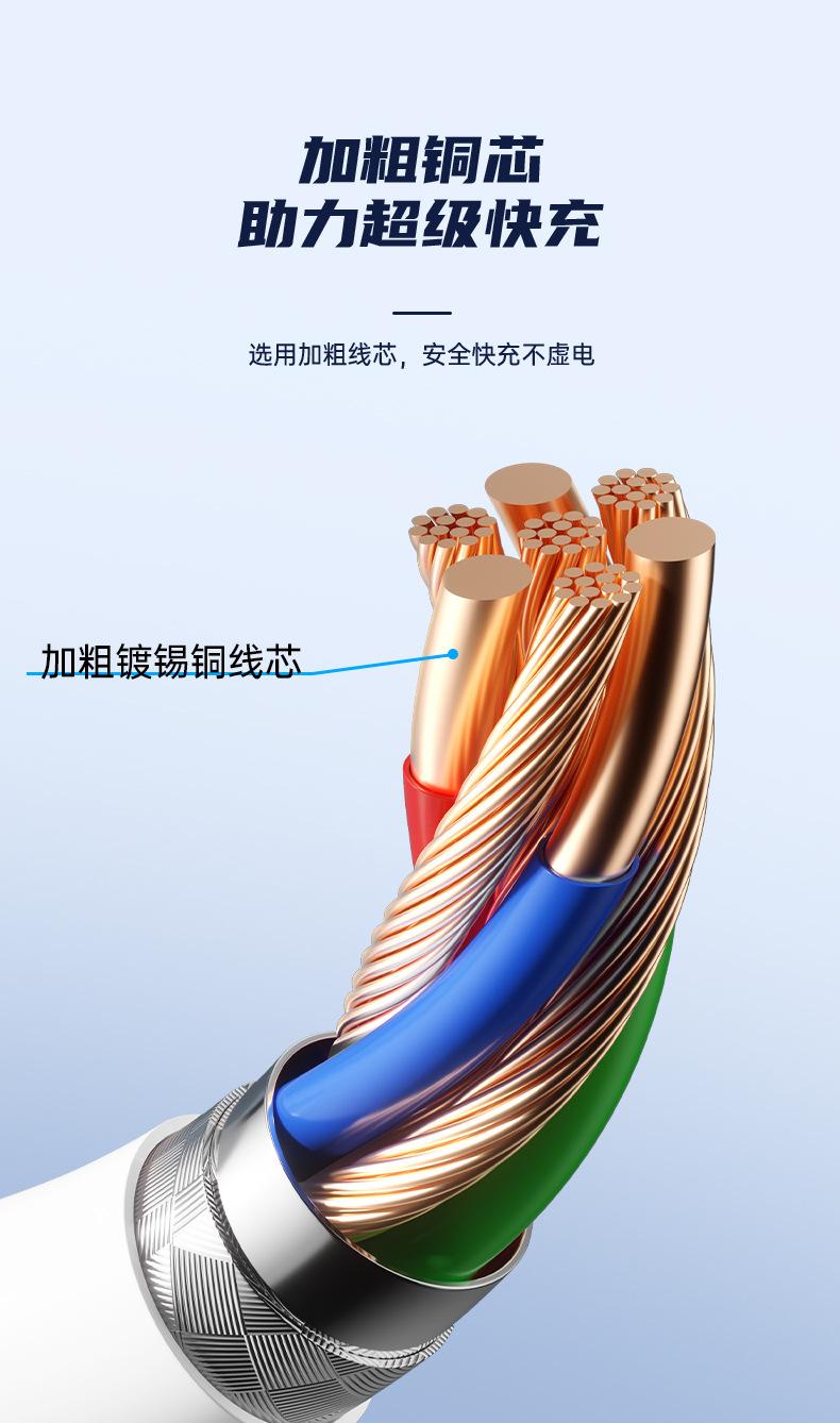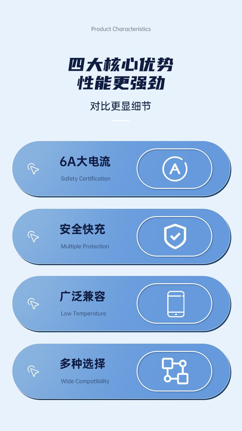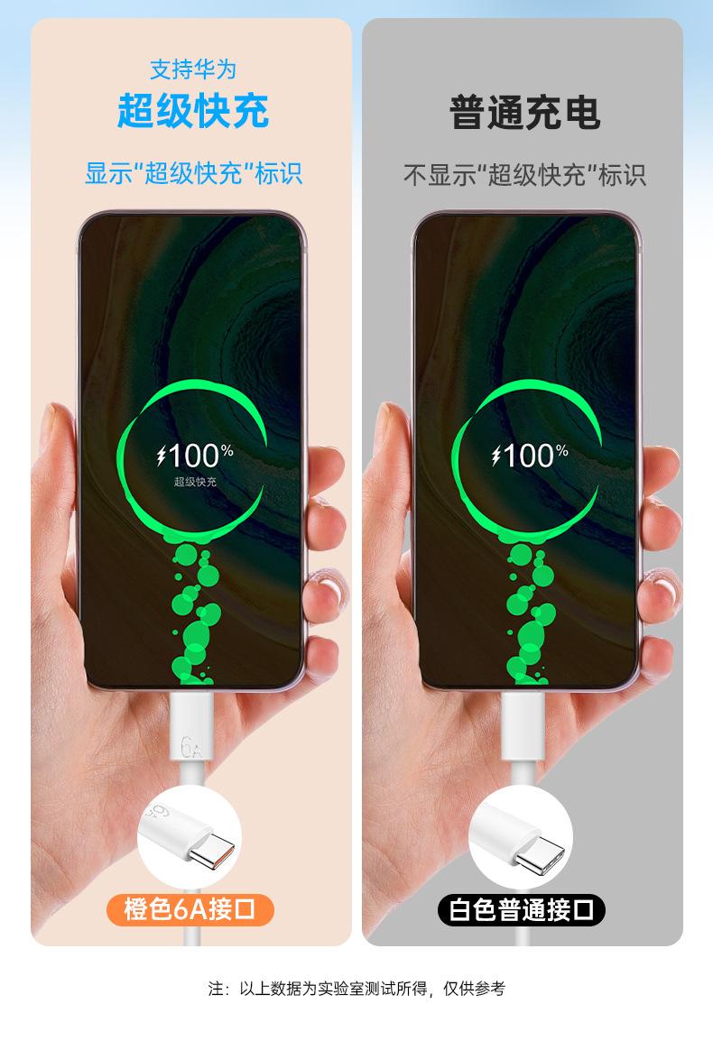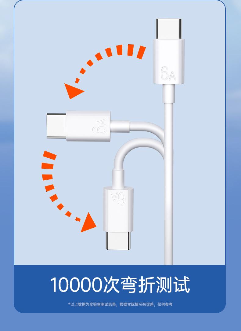 Cable de carga rápida tipo C de un solo cabezal con conector de datos de 6 A. El cable tipo C es adecuado para Huawei, Android y Apple, y su carga rápida es de 5 A.