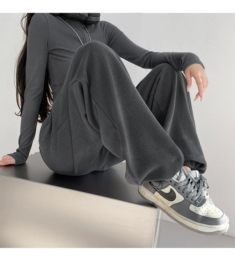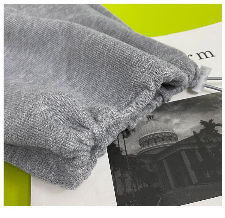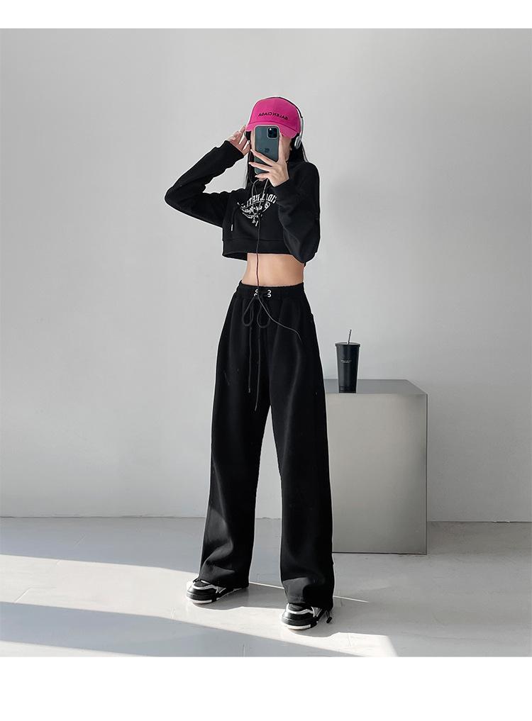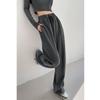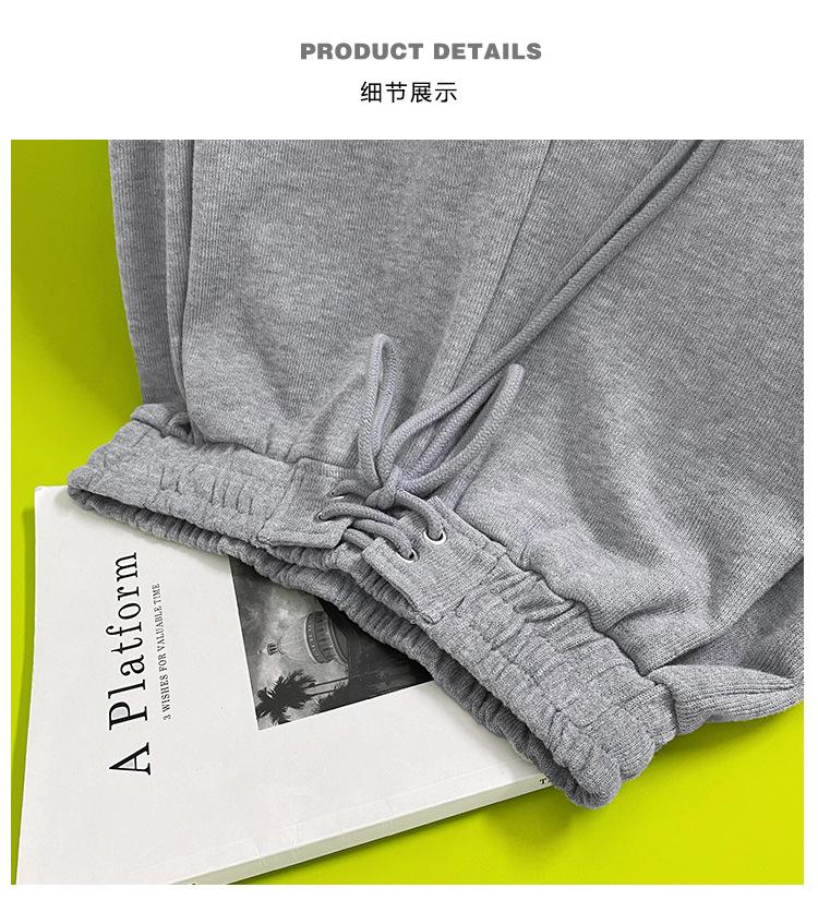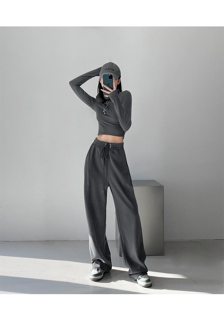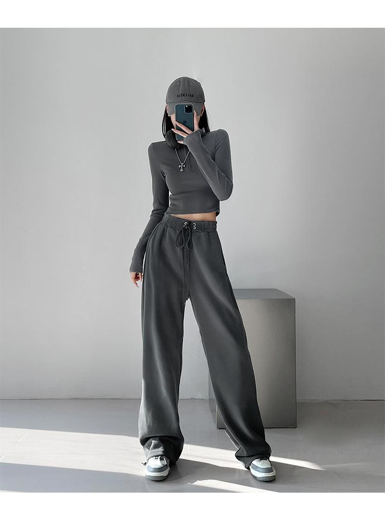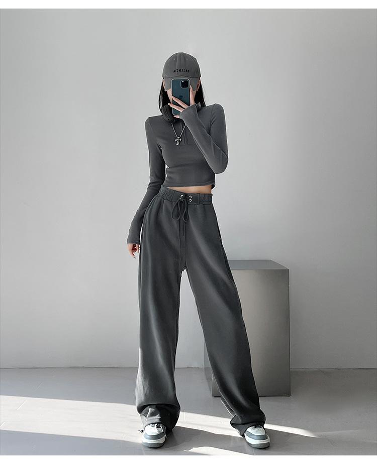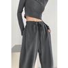 Pantalones deportivos ajustados grises de estilo americano para mujer, con cordón, para primavera y otoño, holgados, rectos y anchos.