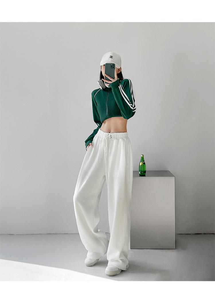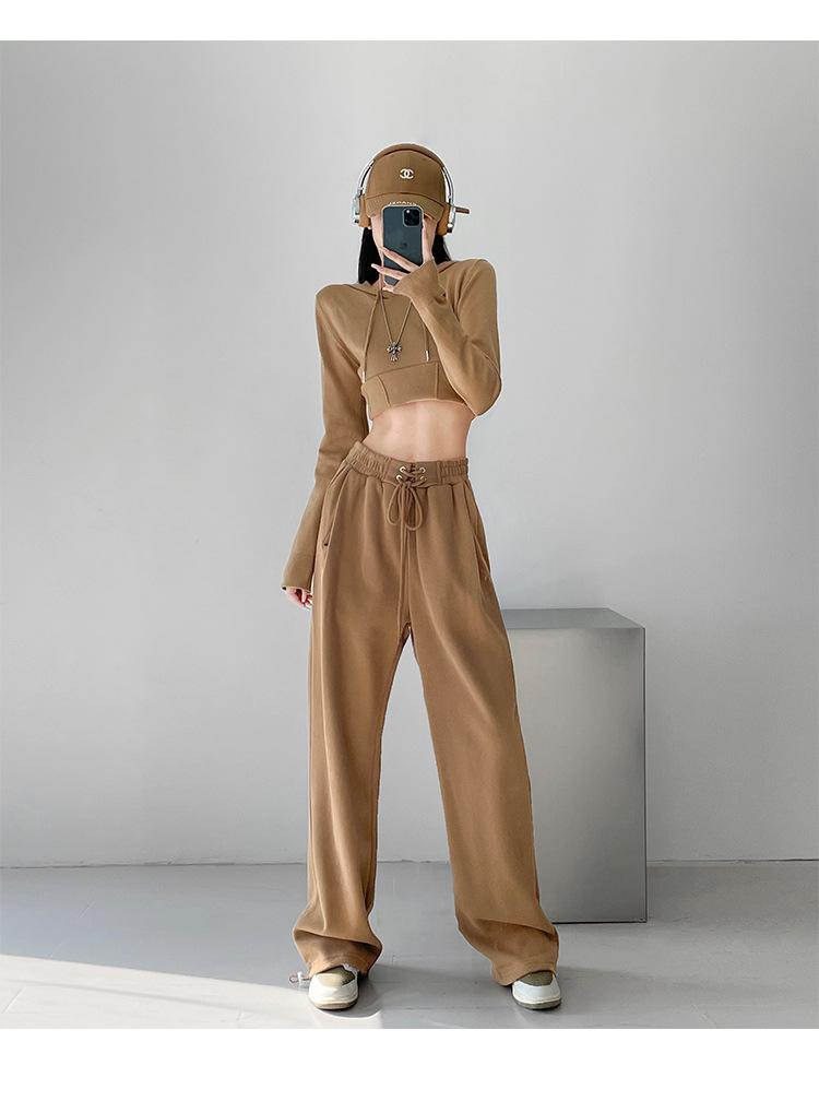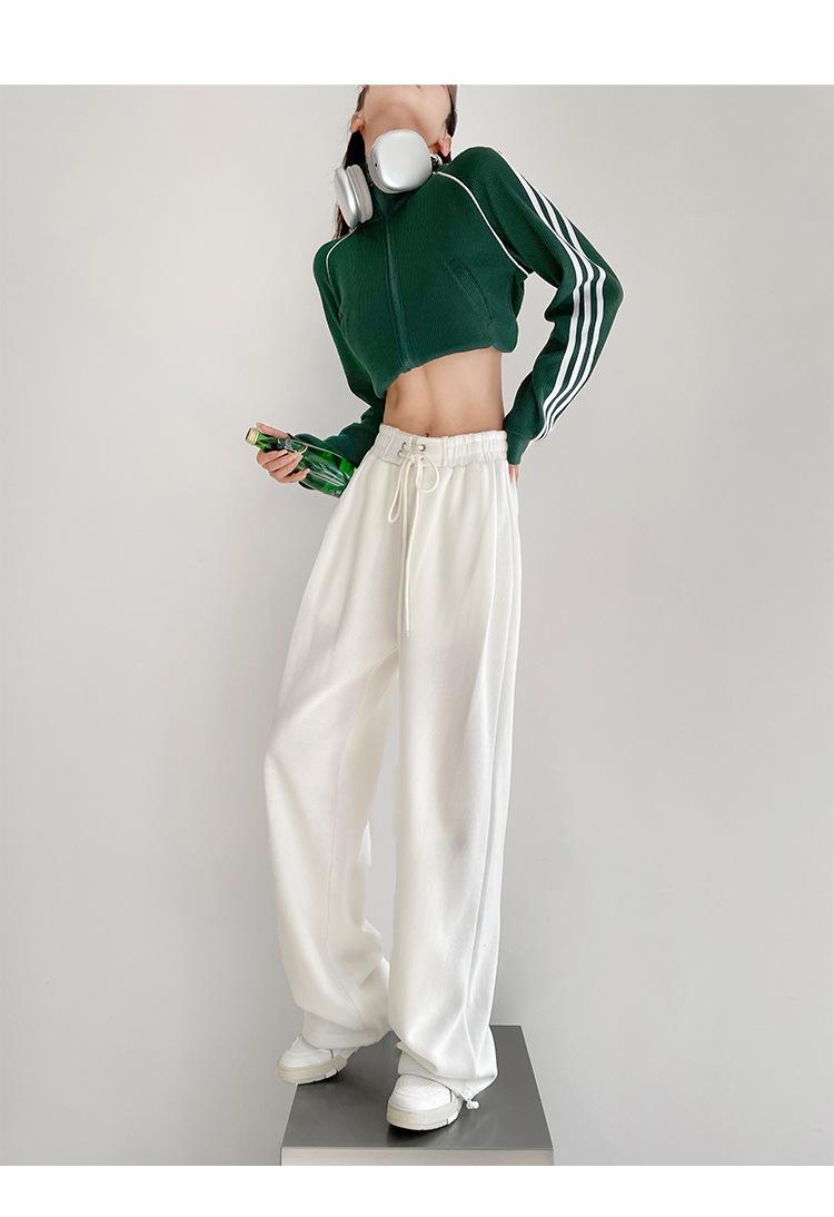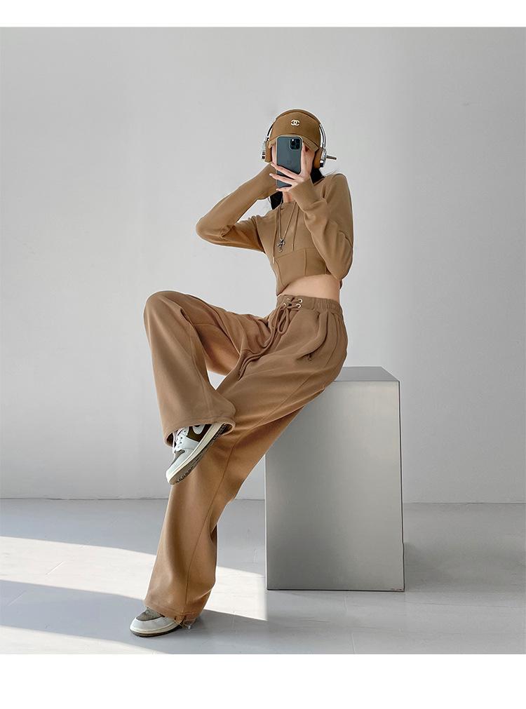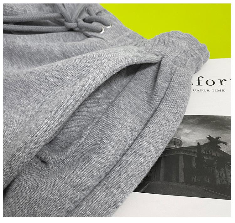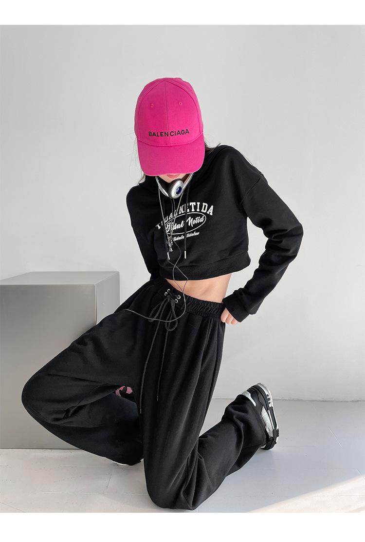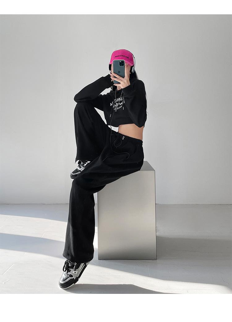 Pantalones deportivos ajustados grises de estilo americano para mujer, con cordón, para primavera y otoño, holgados, rectos y anchos.