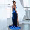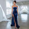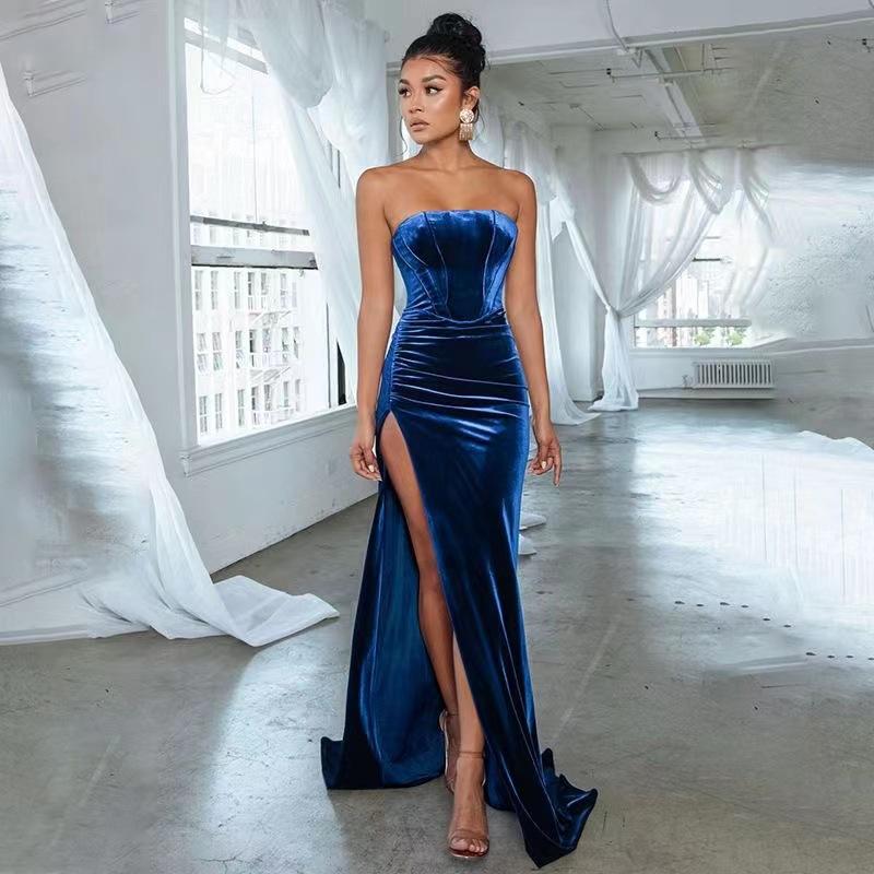 25 Europeo y Americano Transfronterizo Nuevo Amazon Elegante Ajustado con Abertura Strapless Terciopelo Espalda Descubierta vestido Vestido de Noche para Mujeres