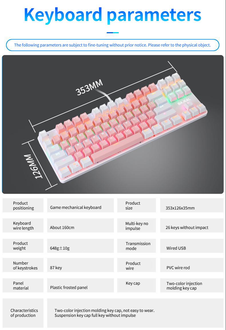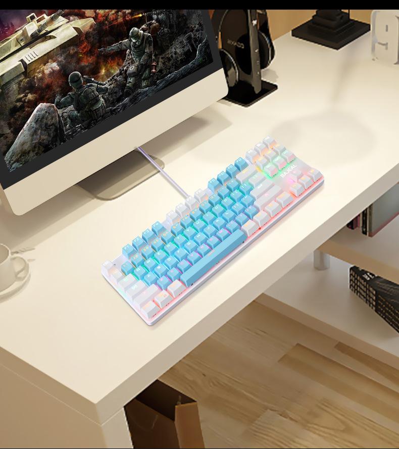 Teclado mecánico eje verde bicolor 87 teclas computadora portátil juego Hogar Oficina RGB luminoso suministro directo transfronterizo