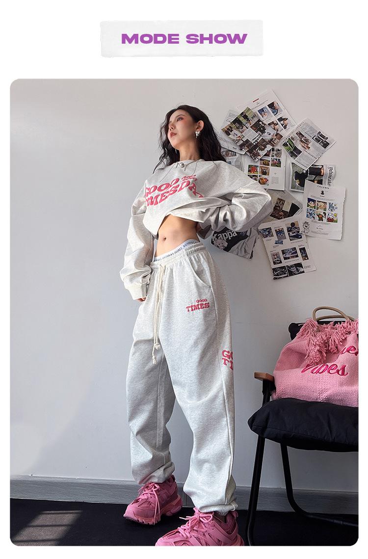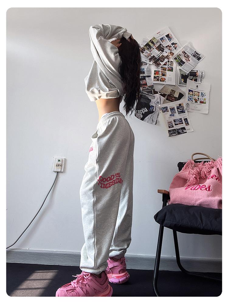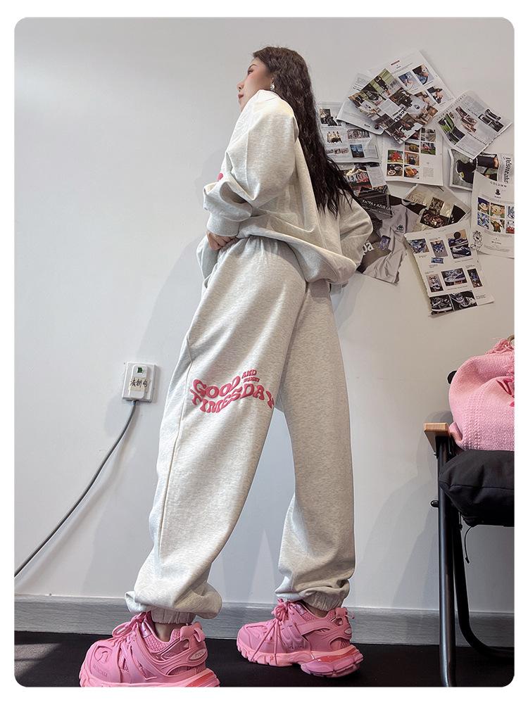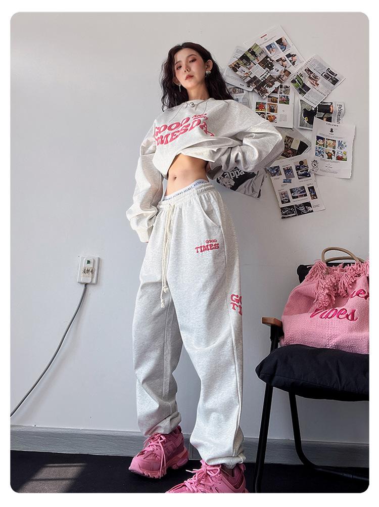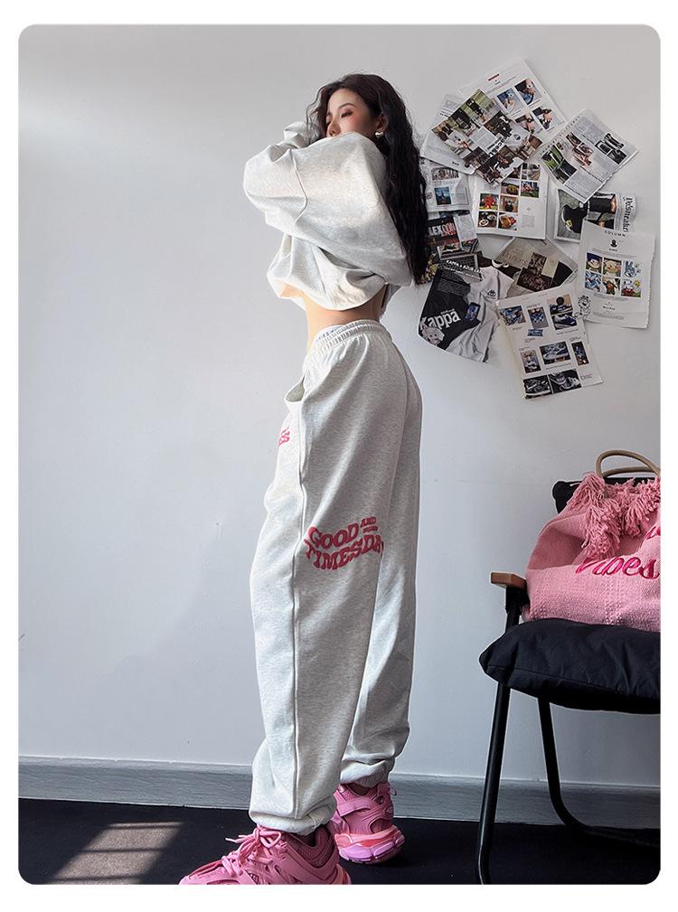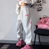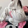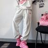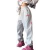 Pantalones anchos grises y blancos para mujer, primavera y otoño, holgados, modernos, estilo Harajuku, para todo tipo de combinaciones, pantalones deportivos casuales con lazo en la pierna.