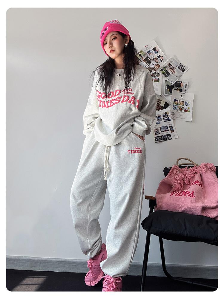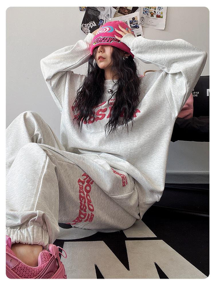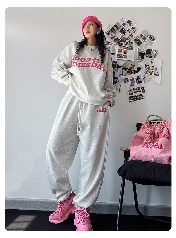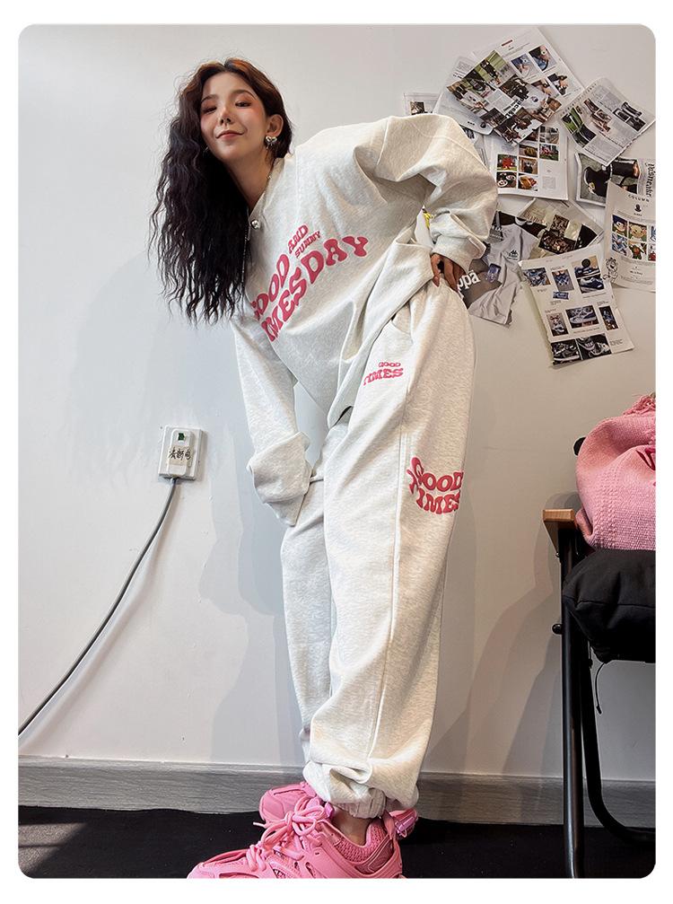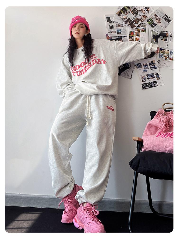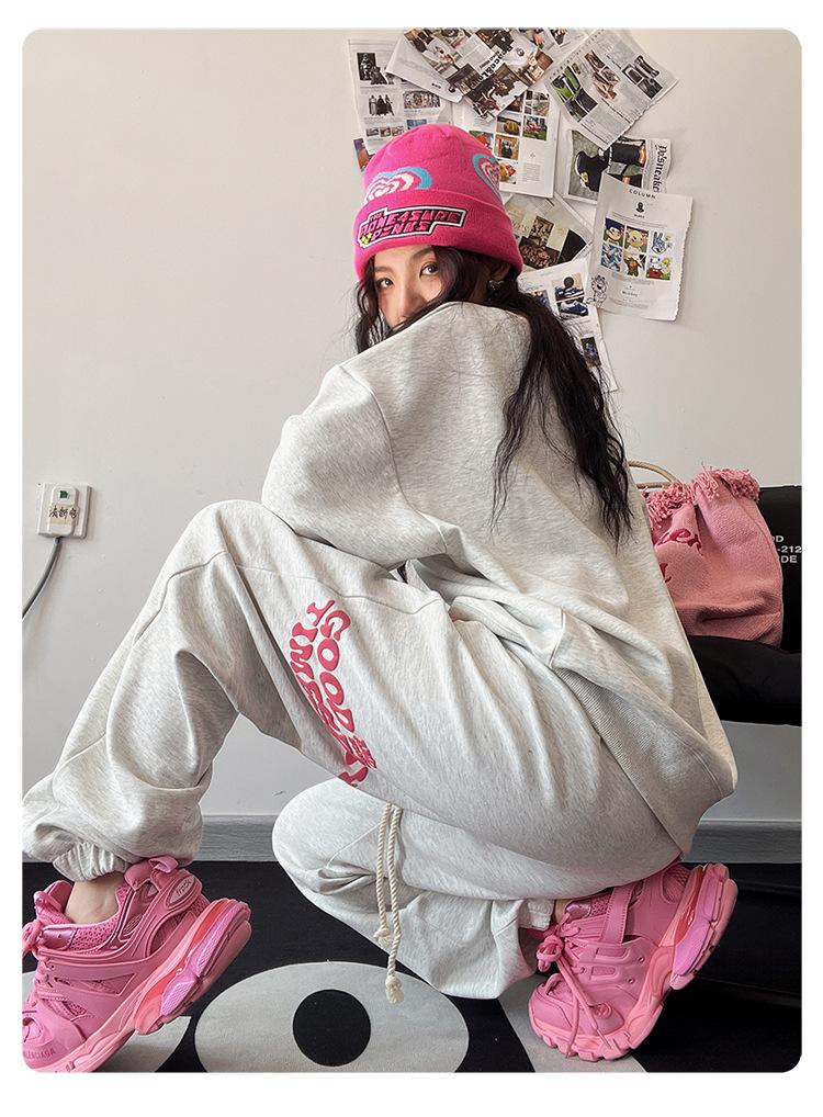 Pantalones anchos grises y blancos para mujer, primavera y otoño, holgados, modernos, estilo Harajuku, para todo tipo de combinaciones, pantalones deportivos casuales con lazo en la pierna.