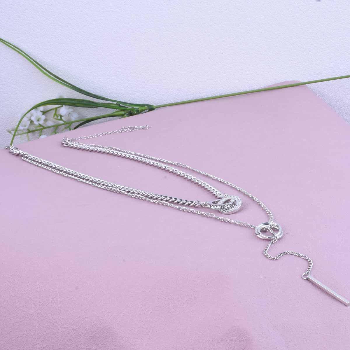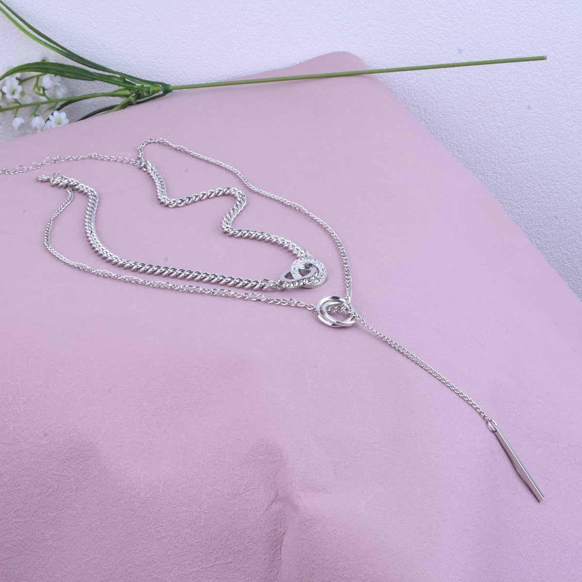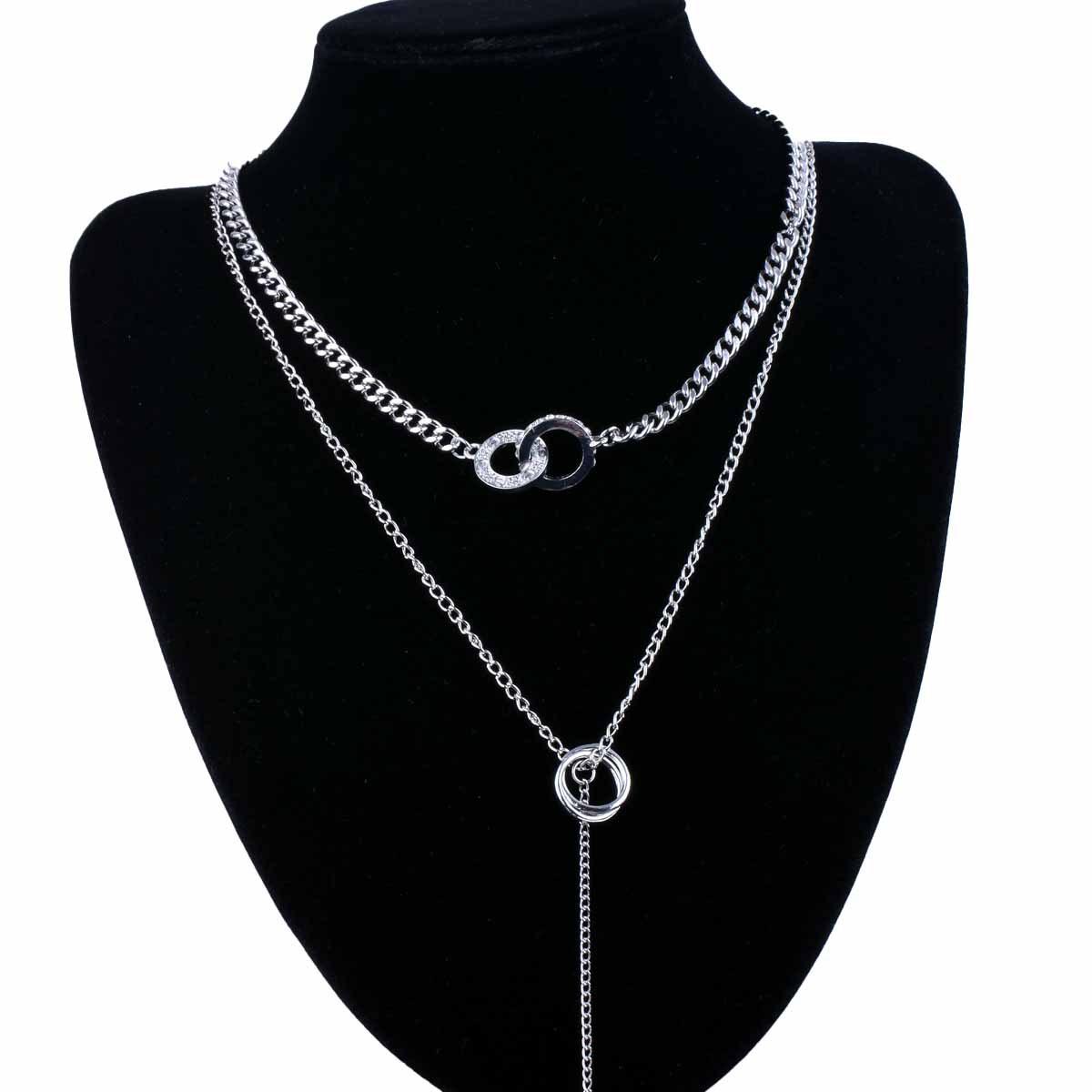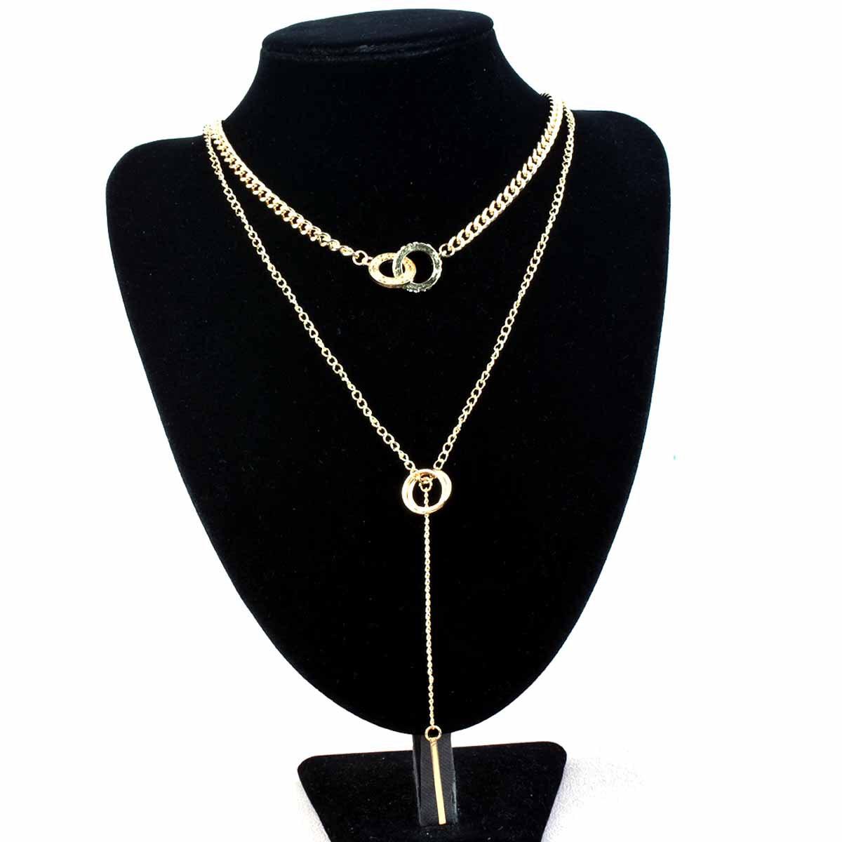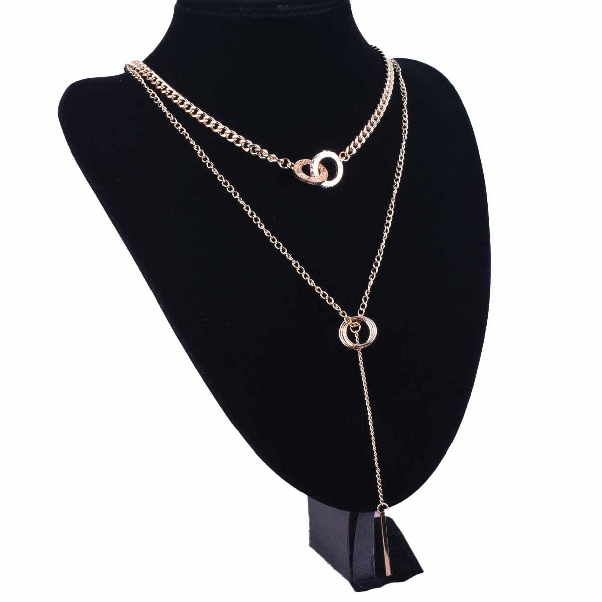 Nieman Europa y Estados Unidos joyería transfronteriza moda cool doble anillo cadena clavicular borla colgante de barra larga collar diseño cadena para suéter