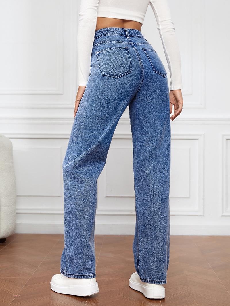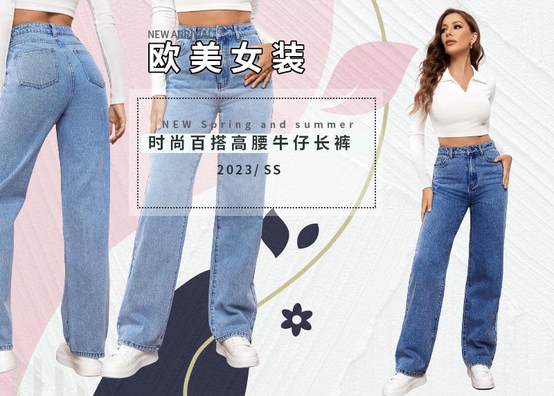 Nuevos pantalones vaqueros transfronterizos de Amazon AliExpress para mujer, de estilo europeo y americano, de cintura alta, ajustados y rectos, con explosiones.