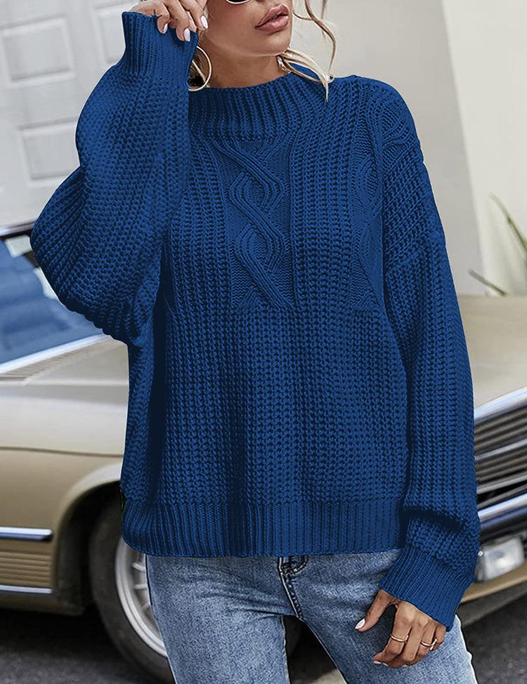 Suéteres Europeos y Americanos Nuevos para Mujer Transfronterizos Amazon Suéteres Holgados de Cuello Alto Medio Torcidos de Punto para Mujer