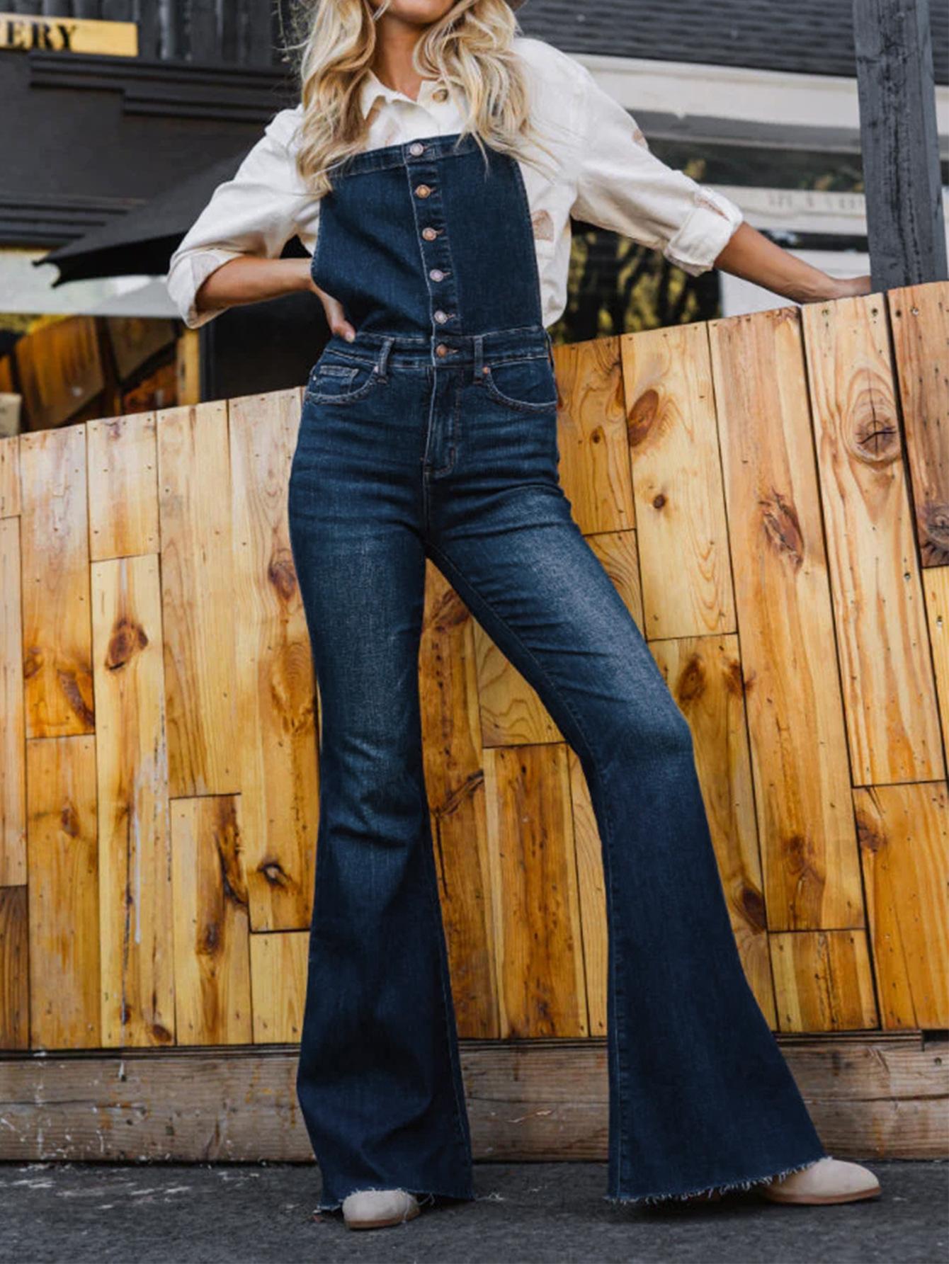 Europa y Estados Unidos otoño e invierno nuevo jeans de moda para mujer ajustados elásticos pantalones acampanados con tirantes jeans para mujer