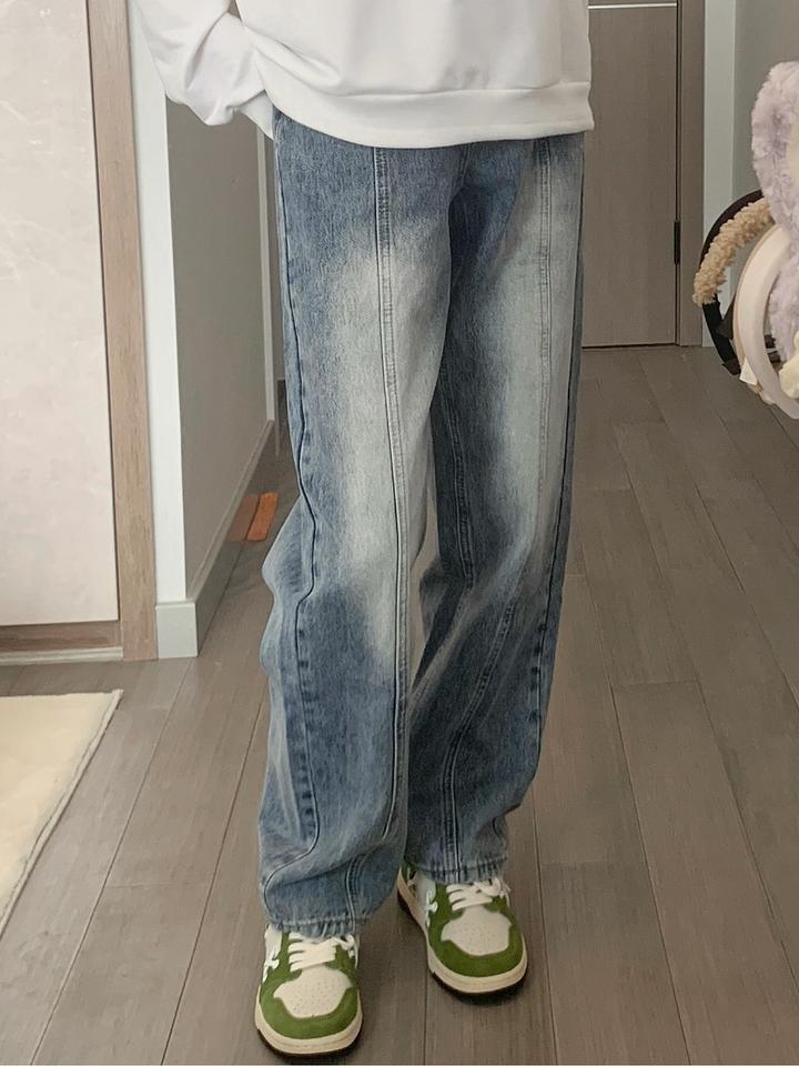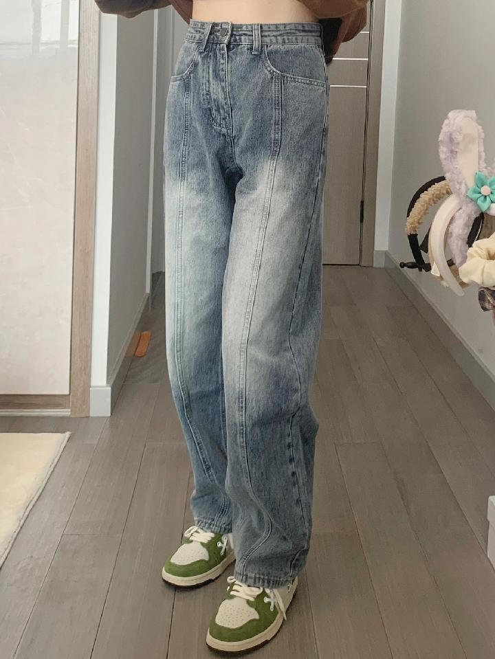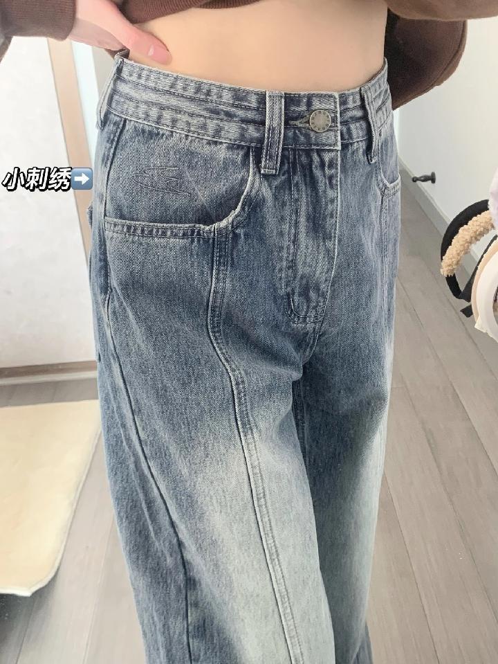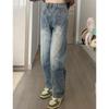 Jeans Rectos Americanos Retro Desgastados para Mujer 2024 Otoño Nuevo Look Holgado Adelgazante Cintura Alta Pierna Ancha Pantalones de Papá