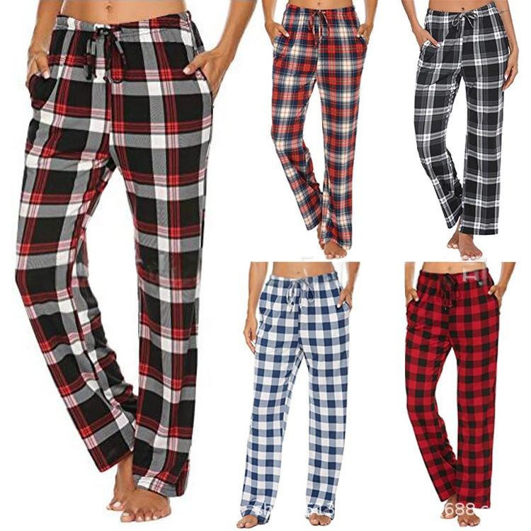Pantalones Casuales para Mujer de Amazon Cómodos Pantalones de Pijama con Bolsillo Elásticos Estampados a Cuadros Pantalones con Cordón para Mujer