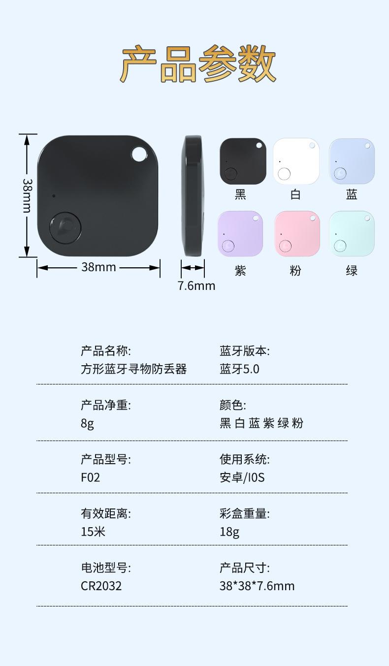 Rastreador Inteligente Universal Cuadrado Bluetooth para Equipaje Llavero Alarma Bidireccional Dispositivo Anti-Pérdida Localizador Fábrica Portátil