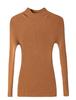 Suéter de cuello alto medio, jersey de manga larga para primavera, delgado, de cuello medio, corte ajustado, camisa base versátil de color sólido para mujer