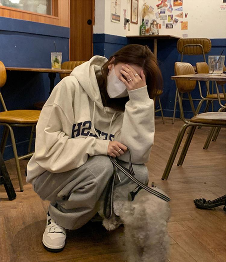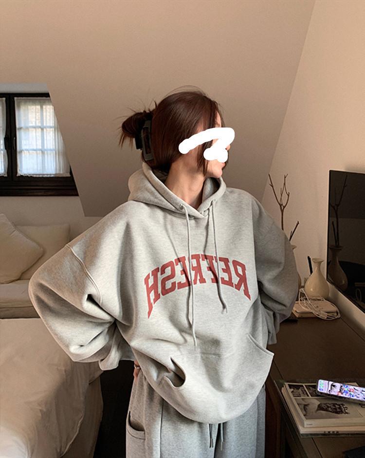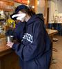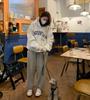 Sudadera con capucha de terciopelo gris con letras retro americanas para mujer 2025 Otoño e Invierno Nueva Chaqueta de estilo holgado y perezoso a la moda