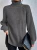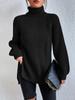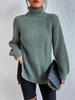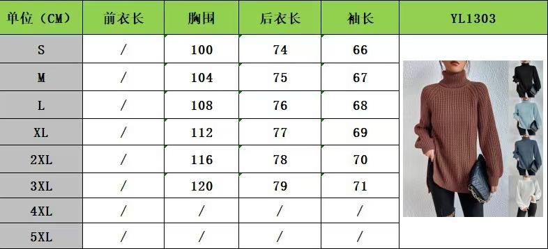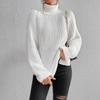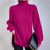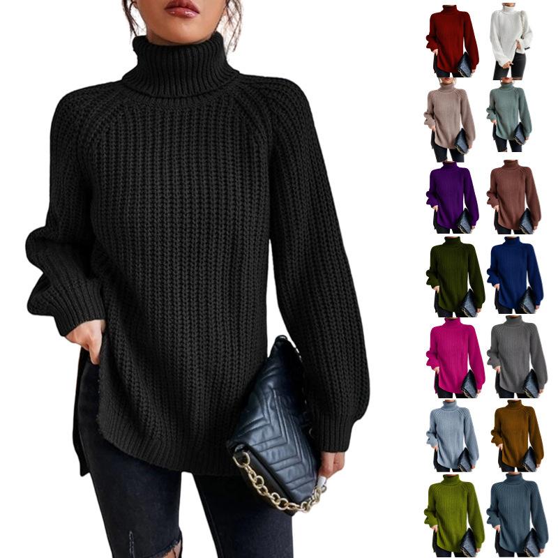 Suéteres Transfronterizos Europeos y Americanos Amazon Otoño e Invierno Color Puro de Moda Cuello Alto Largo Medio Abertura Suéteres de Mujer