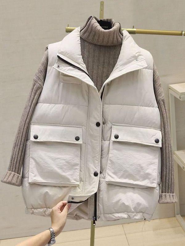 Chaleco Cálido de Algodón Grueso para Mujer Abrigo Corto 2024 Otoño e Invierno Nuevo Estilo Coreano Holgado Versátil Chaqueta Chaleco para Mujer