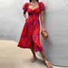 Amazon Ropa de Mujer Transfronteriza 2023 Otoño Nueva Moda Suelta Cuello U Espalda con Cordones Vestido de Manga Larga al por Mayor