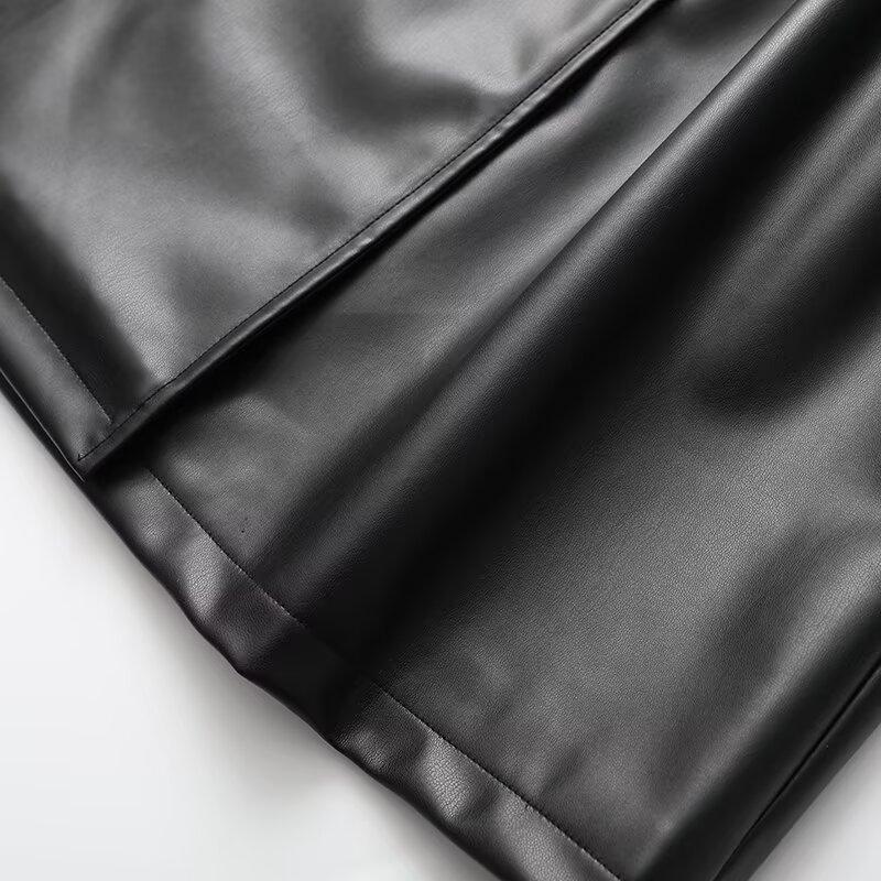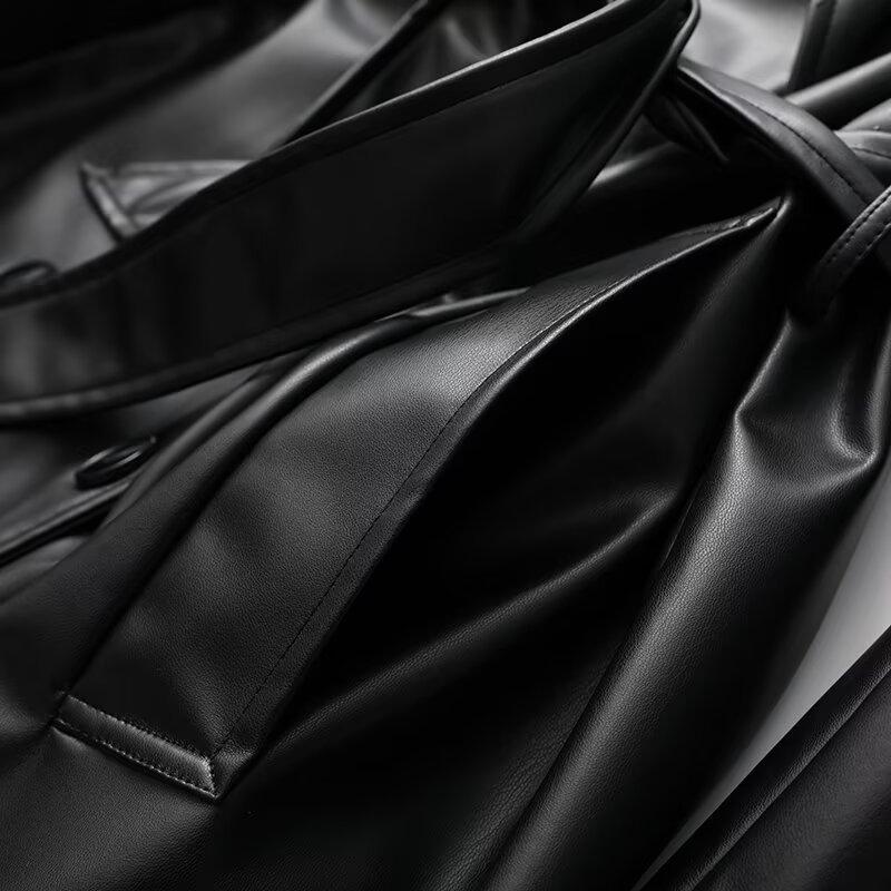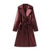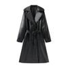 2024 Nueva Ropa de Invierno para Mujer Estilo Europeo y Americano Moda Solapa Cinturón Chaqueta Cortavientos de Cuero de Largo Medio