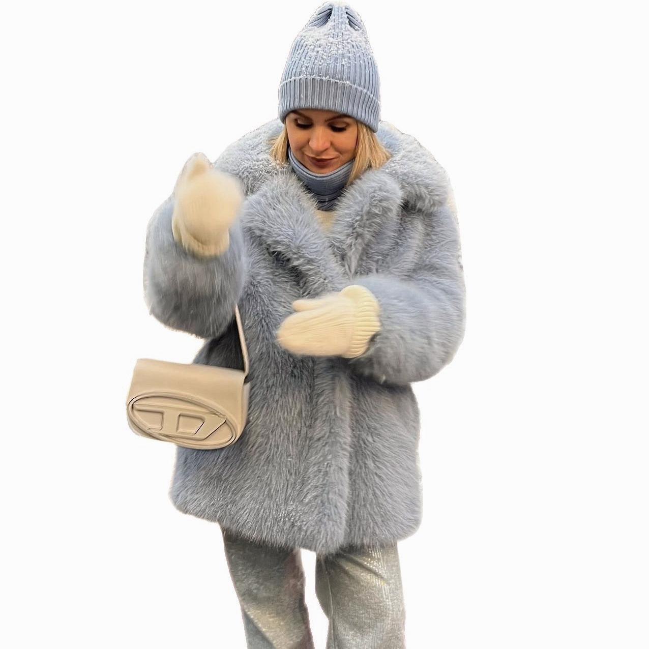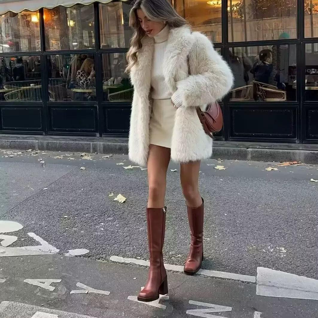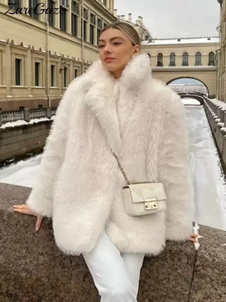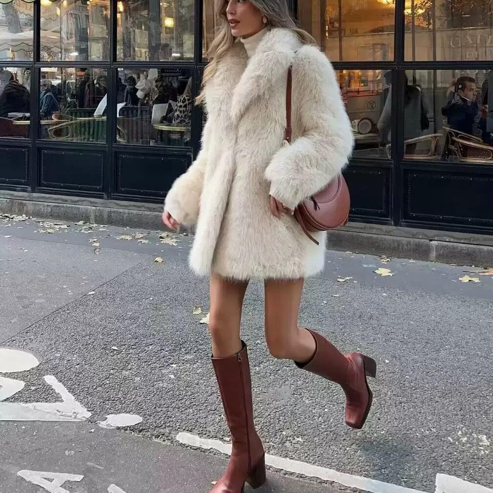 Abrigo de piel sintética de manga larga con solapa y efecto de piel sintética para mujer, estilo europeo y americano, otoño e invierno, nuevo, de Amazon