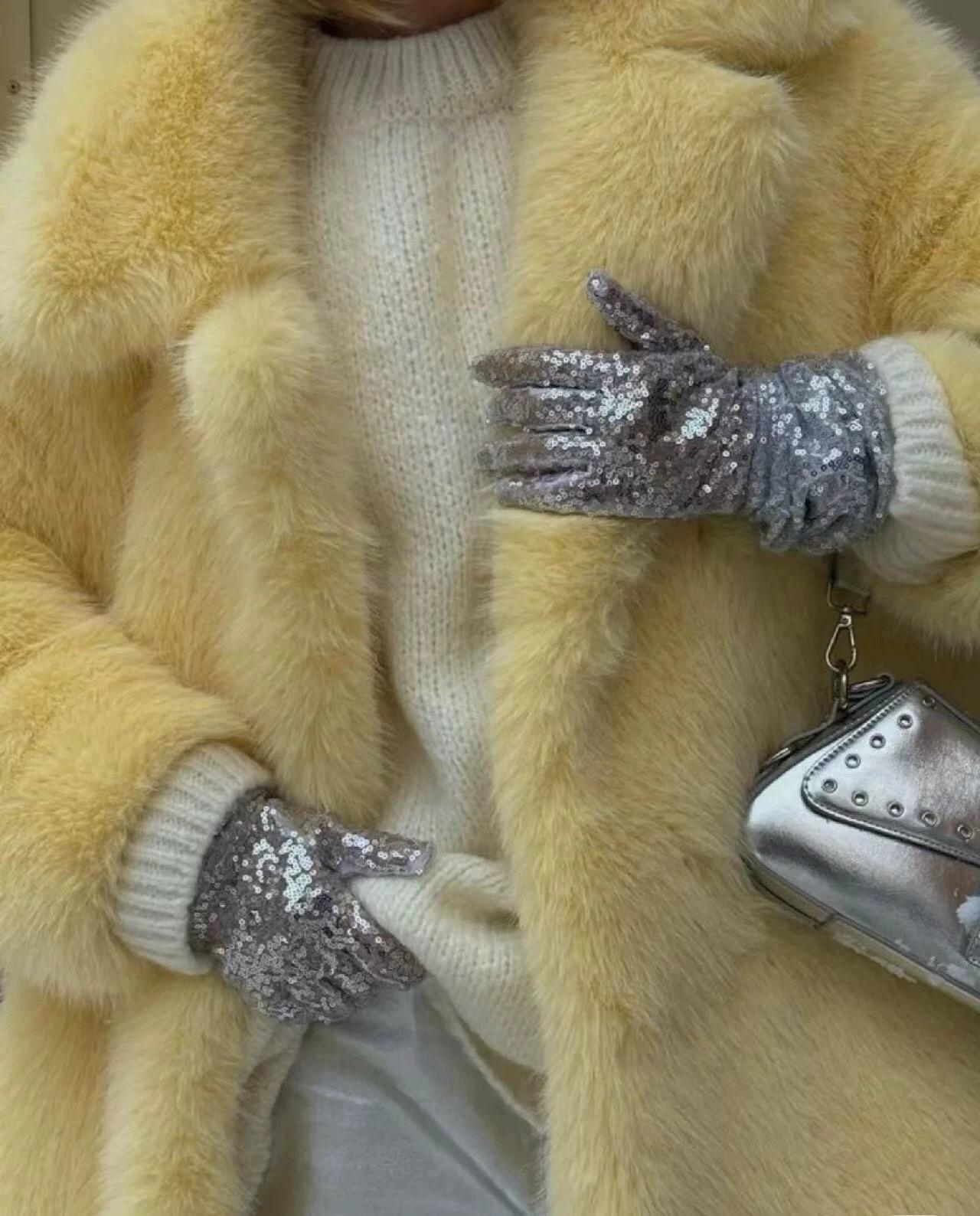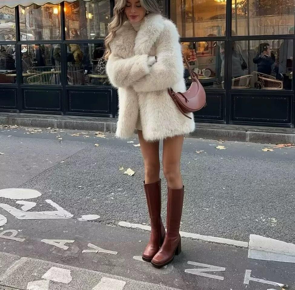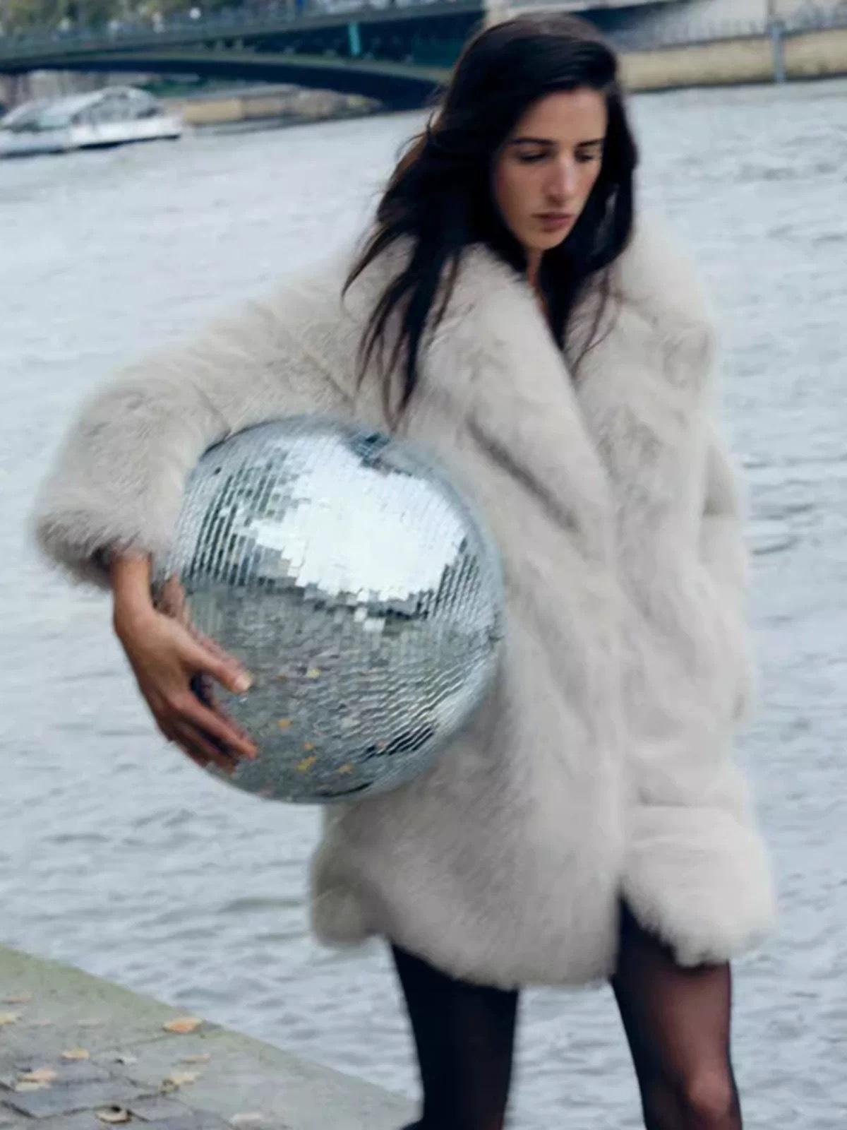 Abrigo de piel sintética de manga larga con solapa y efecto de piel sintética para mujer, estilo europeo y americano, otoño e invierno, nuevo, de Amazon