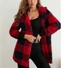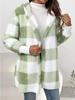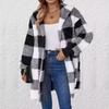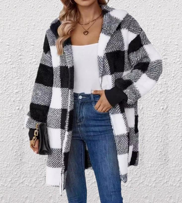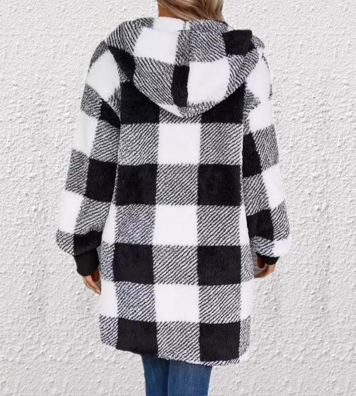 Ropa de Mujer Transfronteriza Amazon Explosiones Otoño e Invierno Europeo y Americano con Capucha a Cuadros Cálida Chaqueta Larga de Felpa Cárdigan Chaqueta