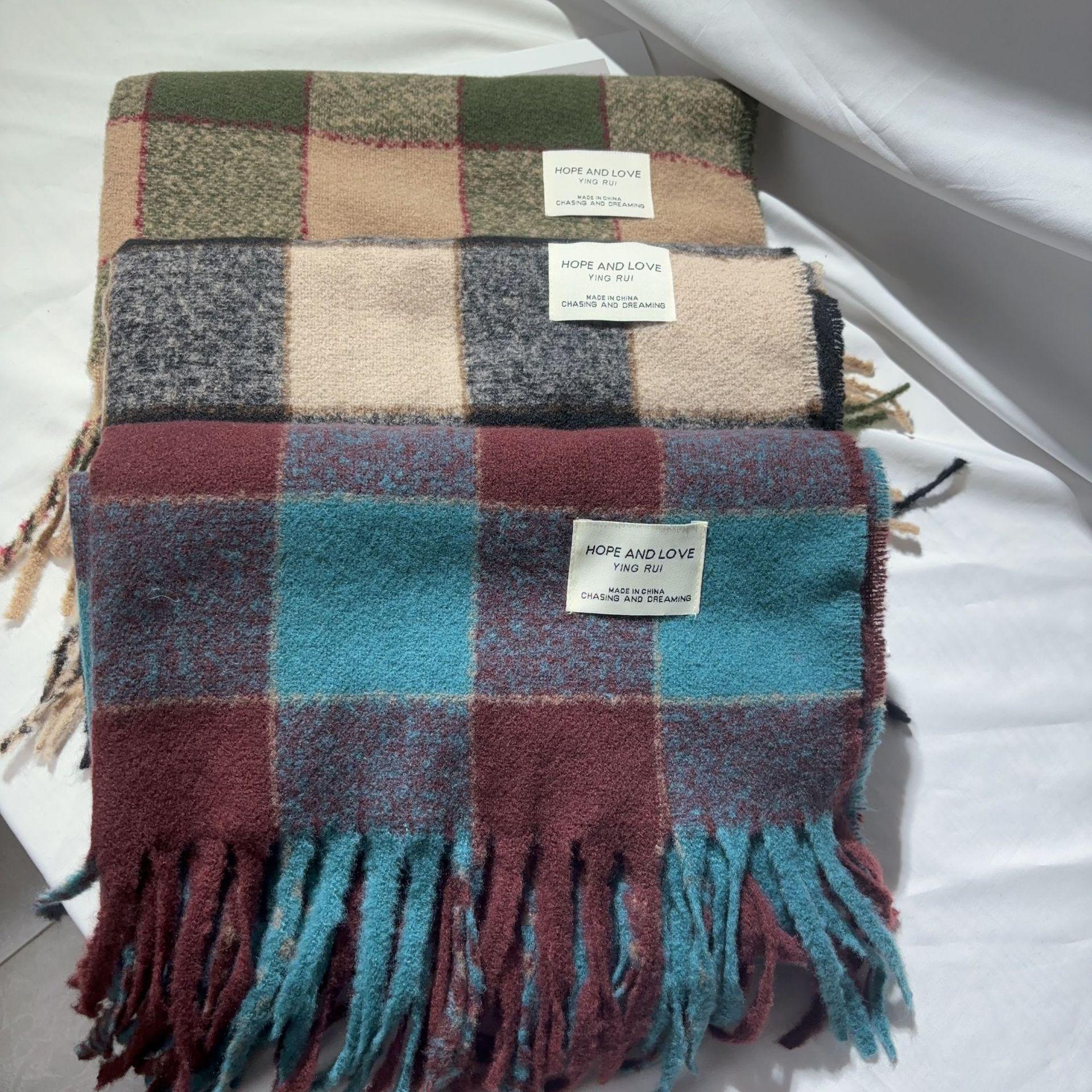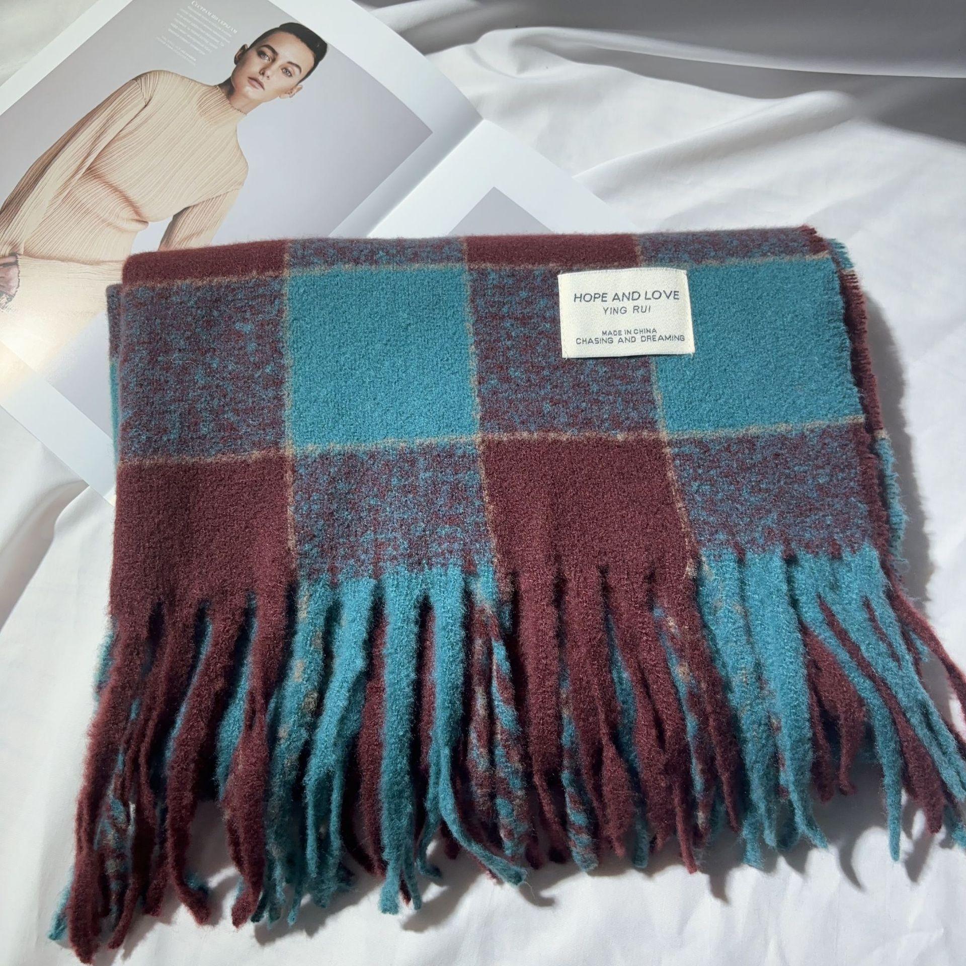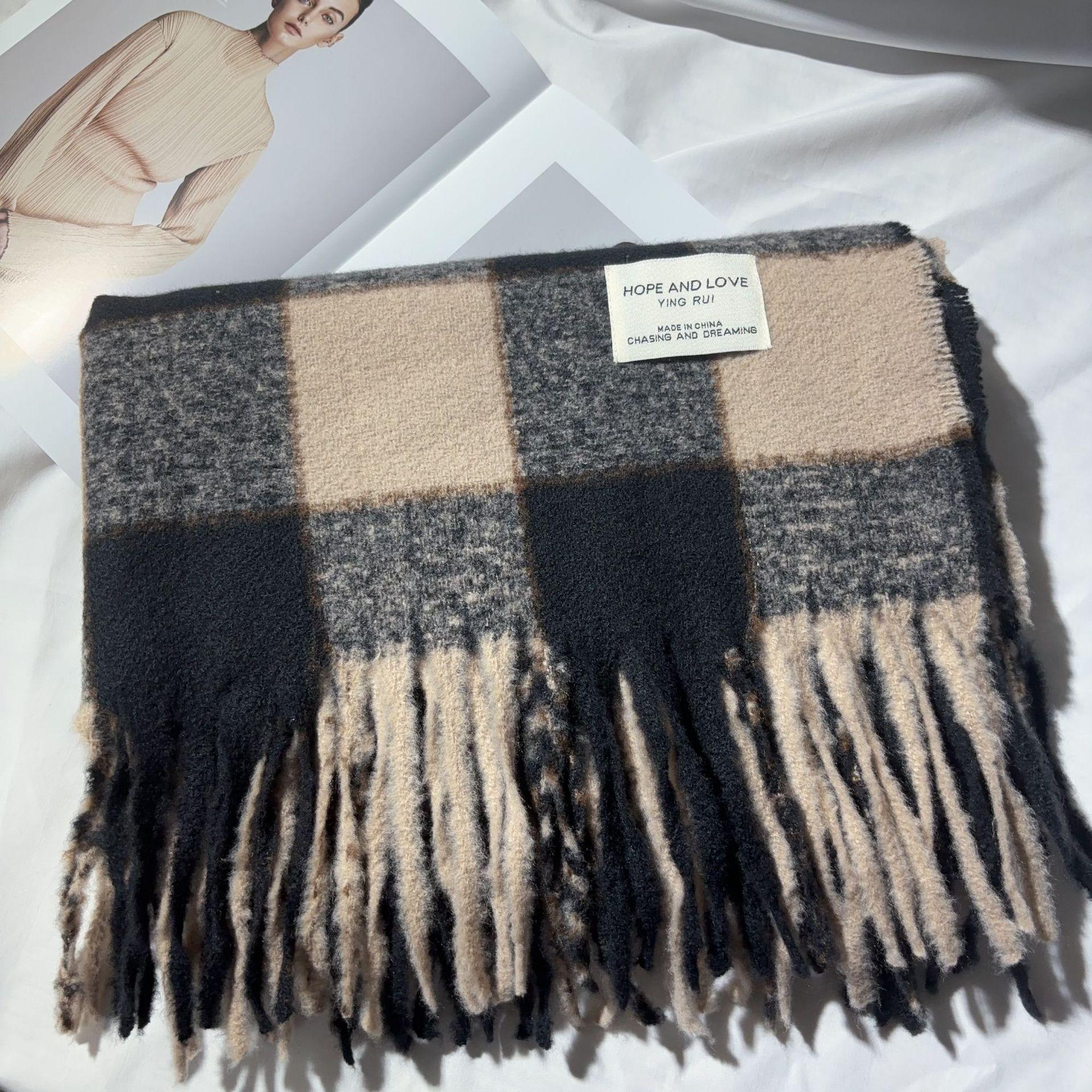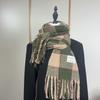 Bufanda de cachemira de imitación con borlas a cuadros de estilo coreano 2024 para mujer, cálida, combinable con todo, para estudiantes y parejas, a la moda para otoño e invierno.