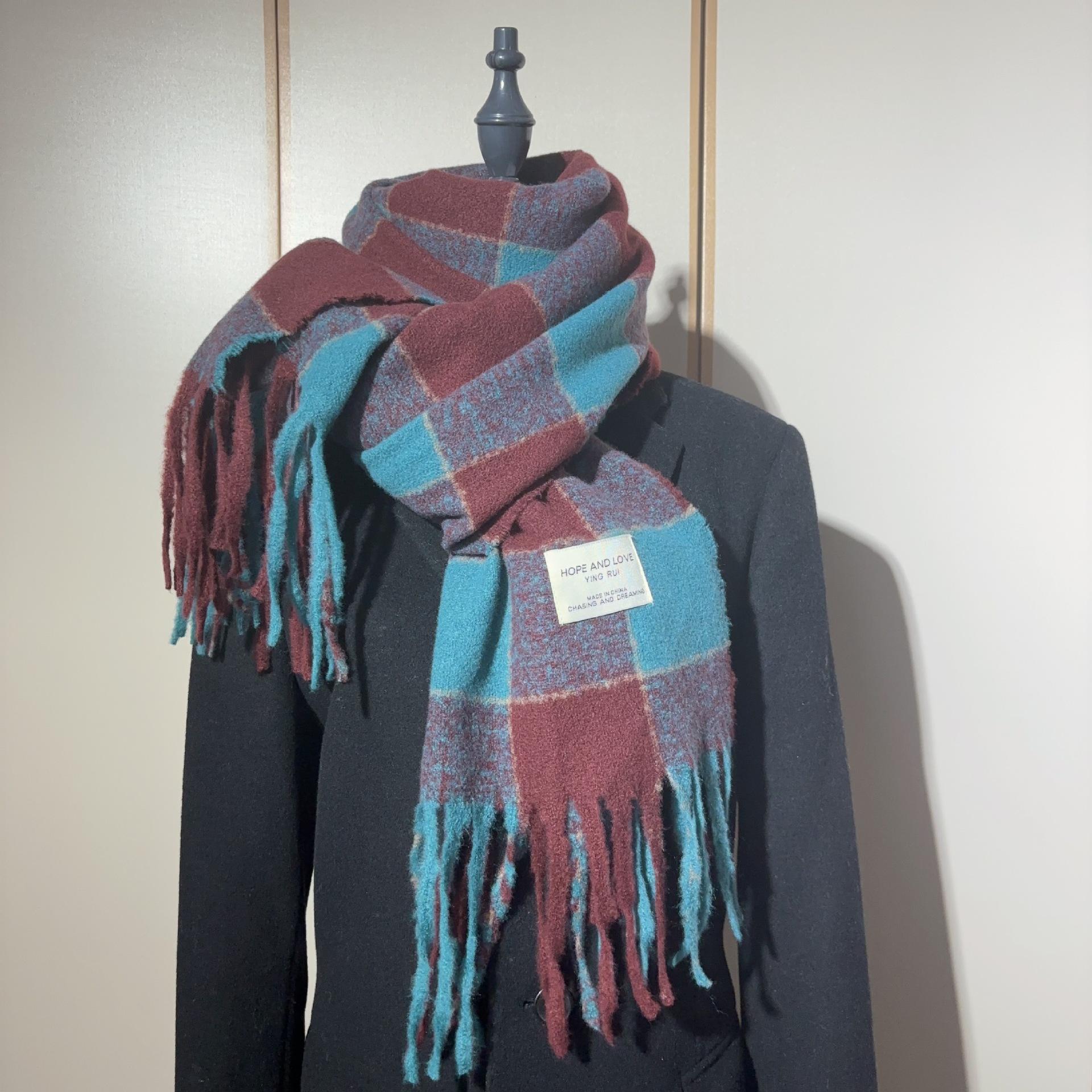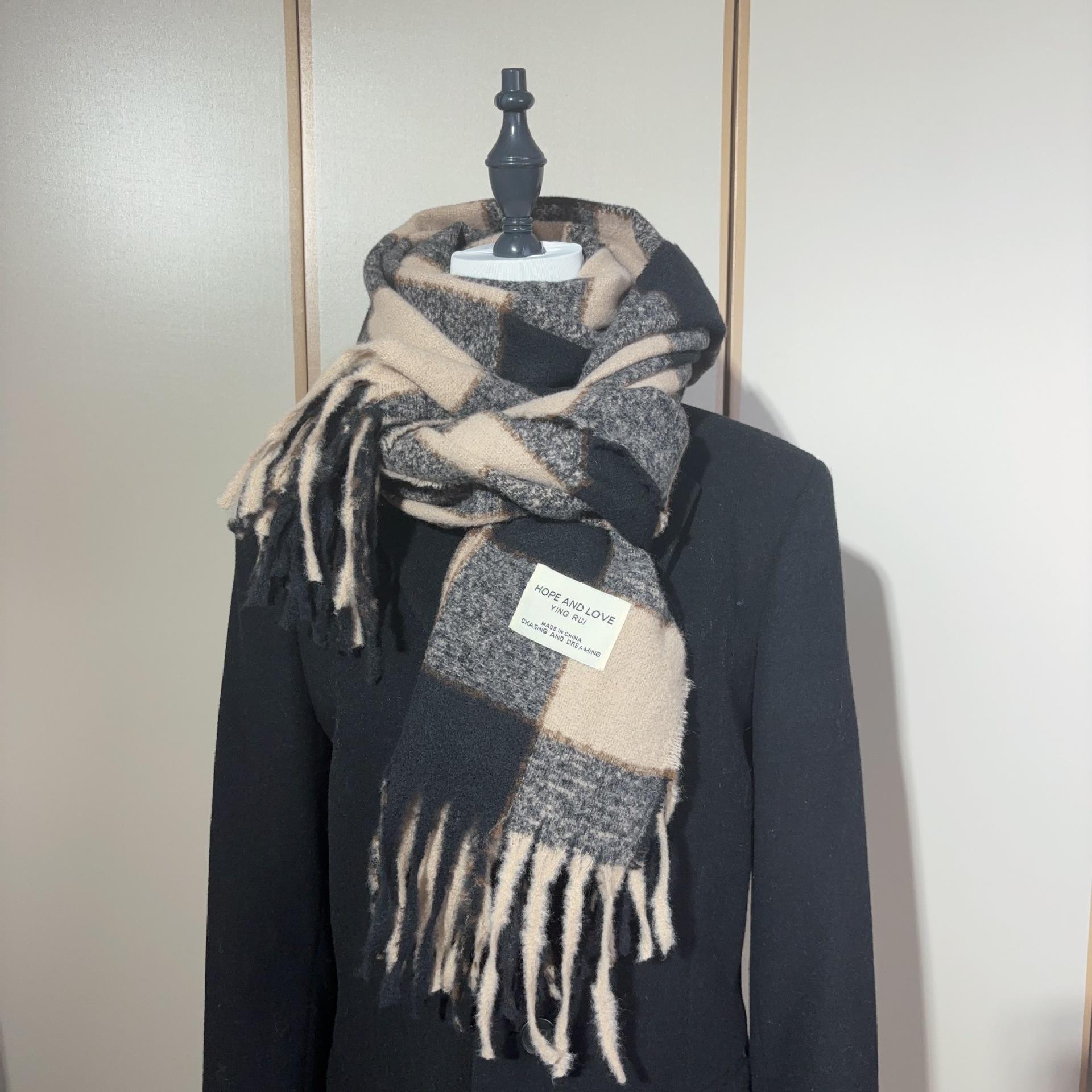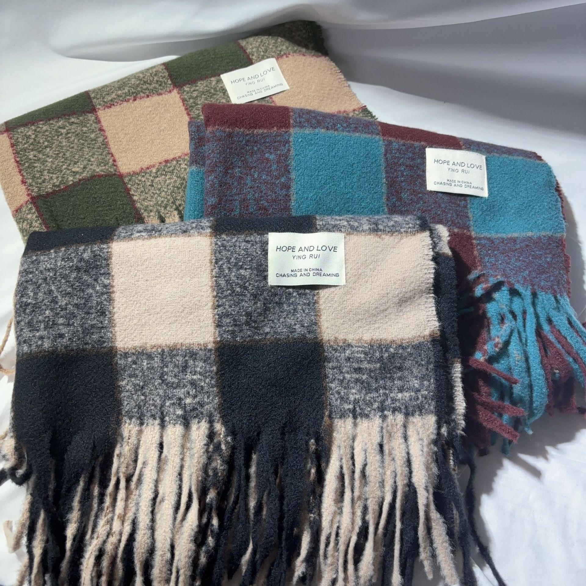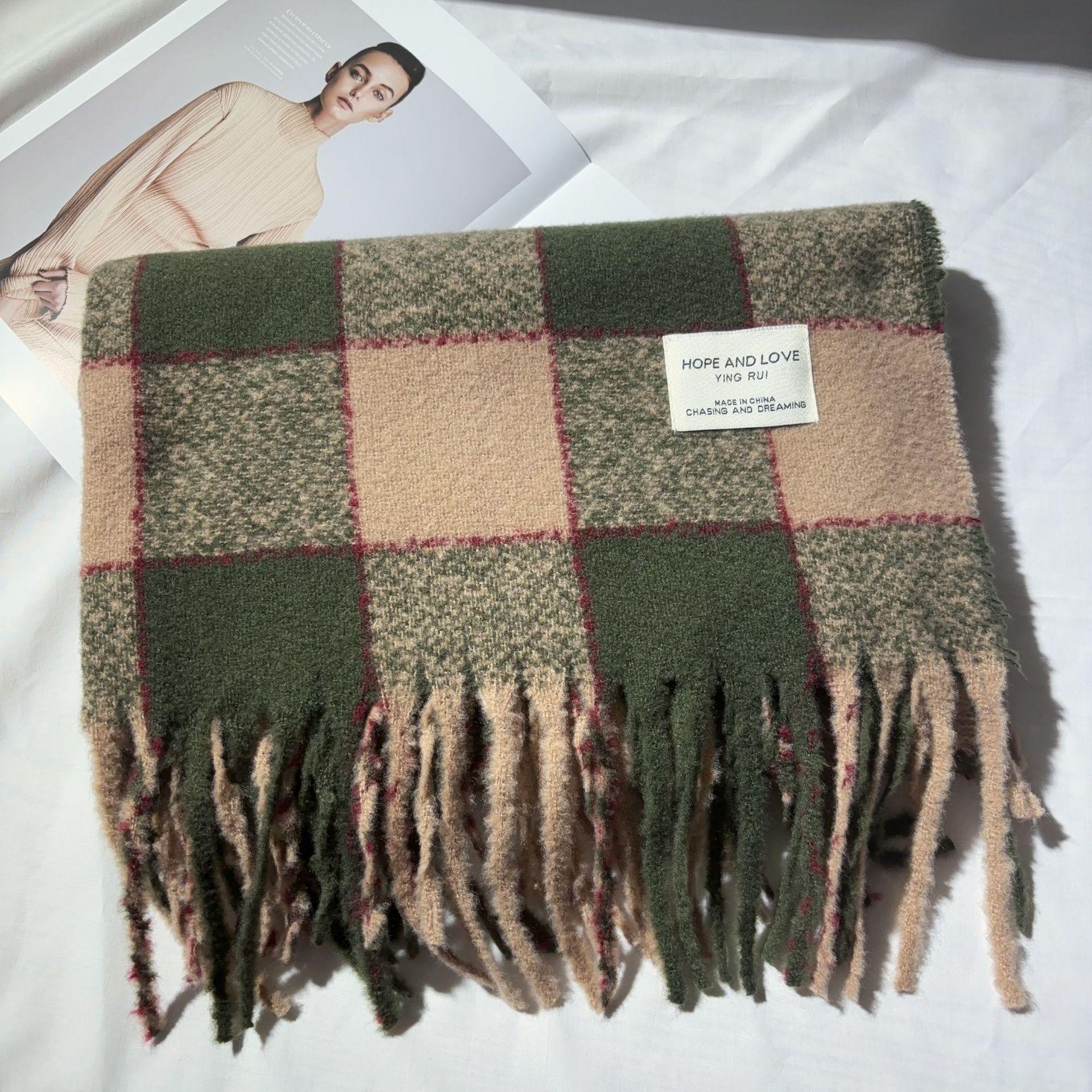 Bufanda de cachemira de imitación con borlas a cuadros de estilo coreano 2024 para mujer, cálida, combinable con todo, para estudiantes y parejas, a la moda para otoño e invierno.
