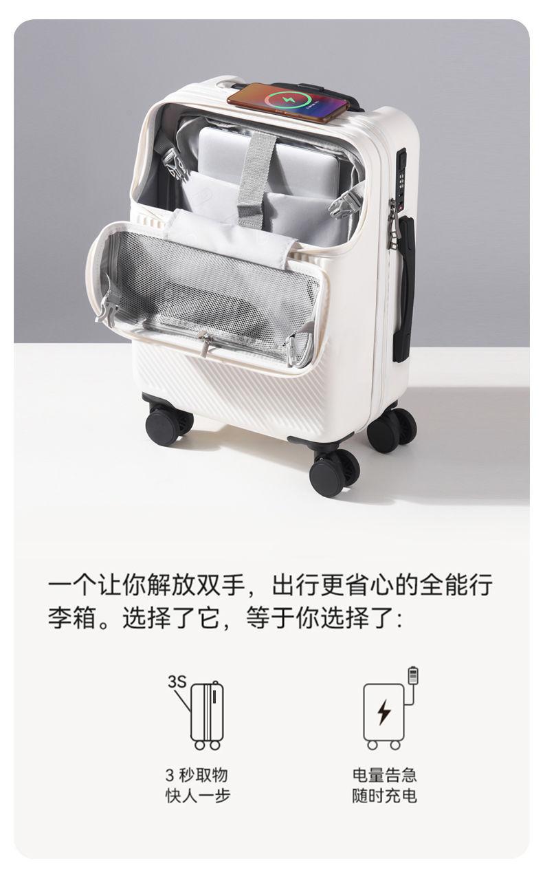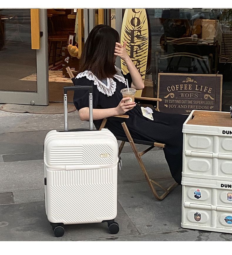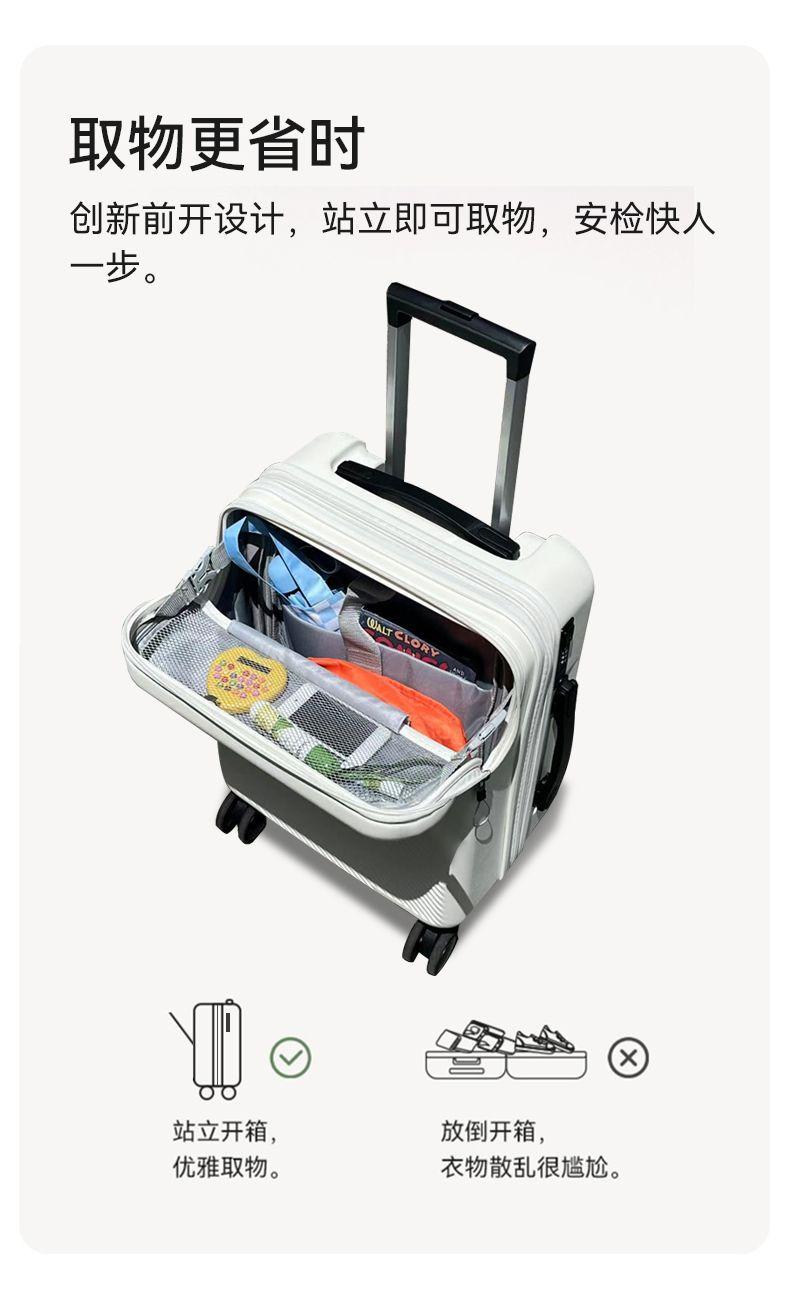 Equipaje 2023 Nuevo Maleta de Carga USB para Mujer Apertura Frontal 20 pulgadas Maleta Trolley Pequeña Zhao Zhou
