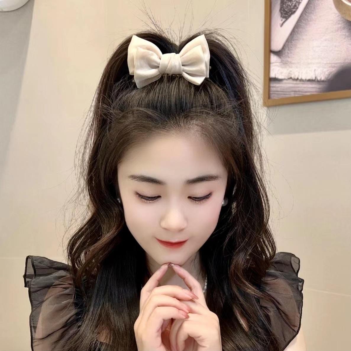 Pinza para el cabello de lazo de malla dulce para mujer, simple elegante, clip para moño, nueva joyería para la cabeza de clip de celebridad de internet 2023