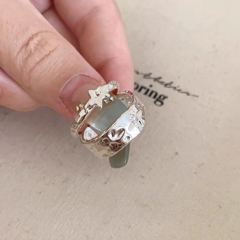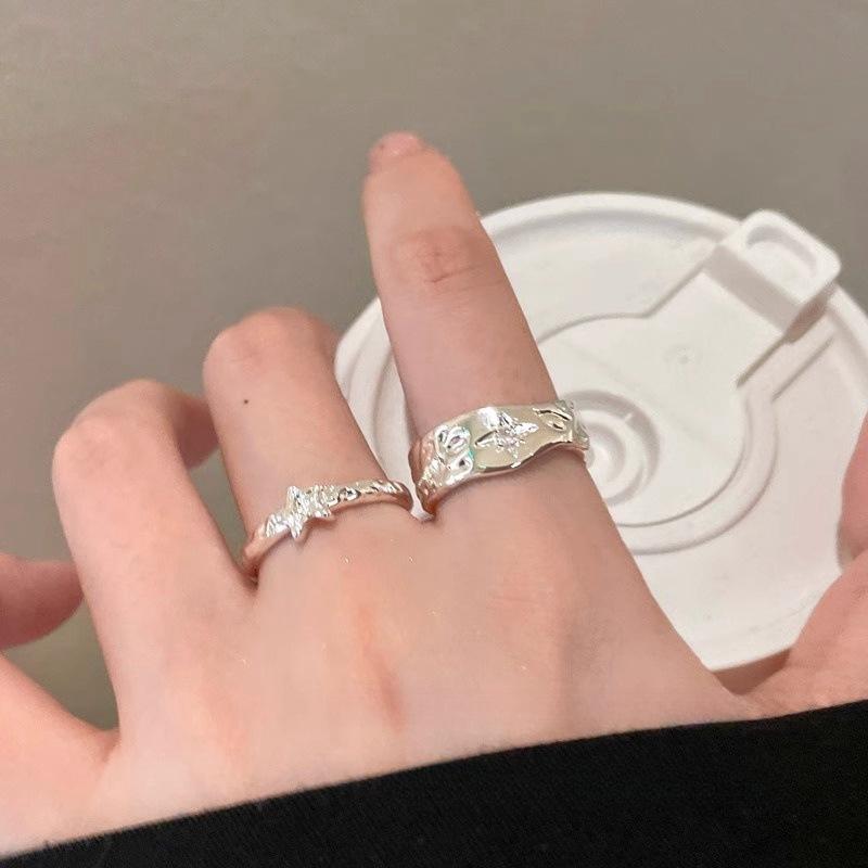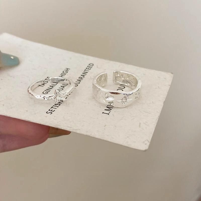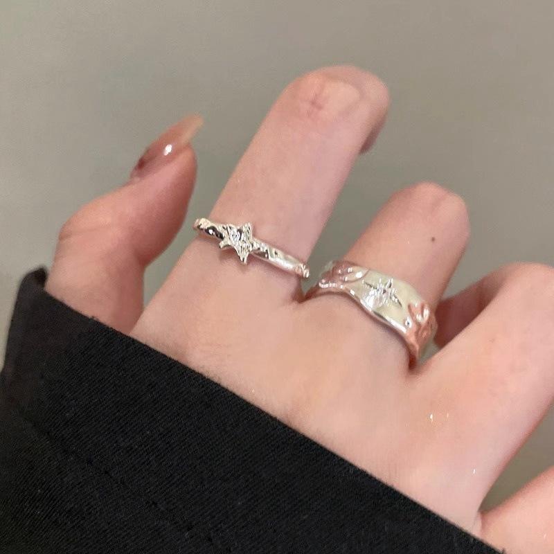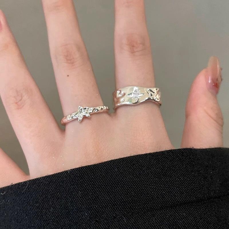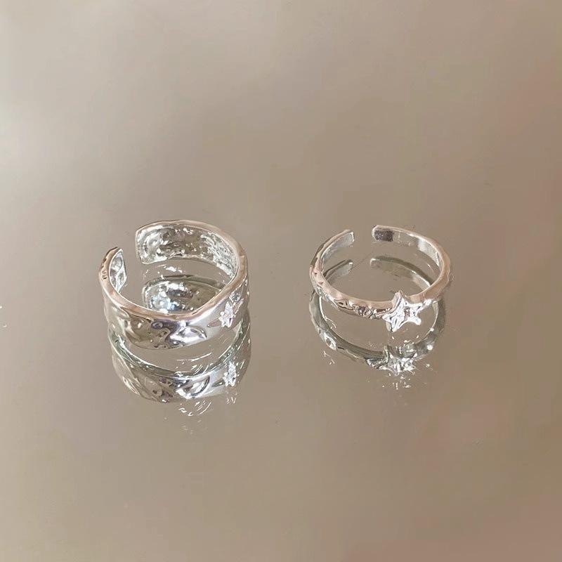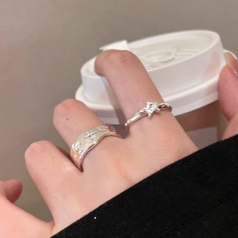 Anillo Color Plata Estrella Anillo Abierto Nicho para Mujer Lujo Ligero Sensación de Alta Gama Anillo Estilo Cool Simple Anillo para el Dedo de Comida