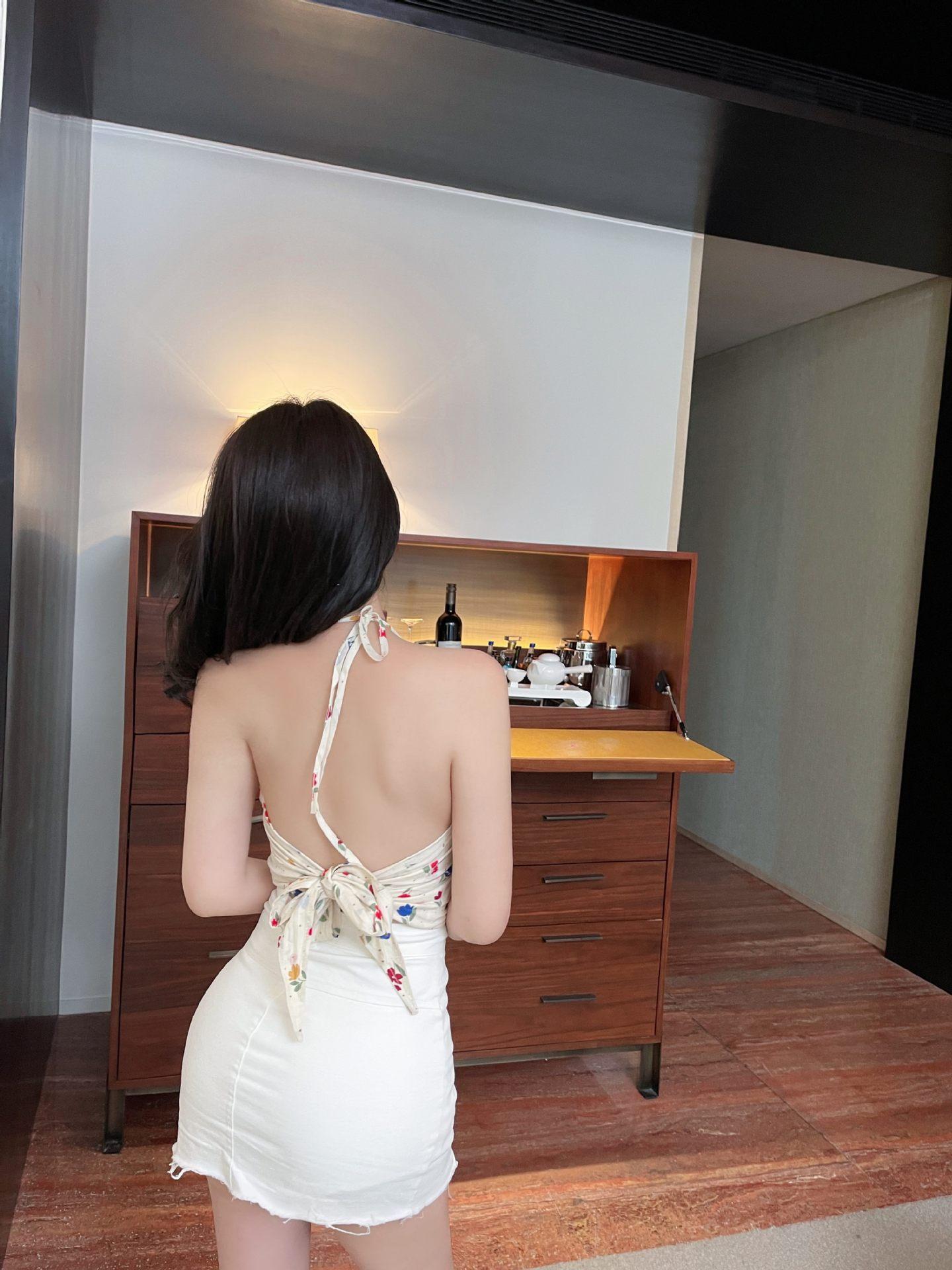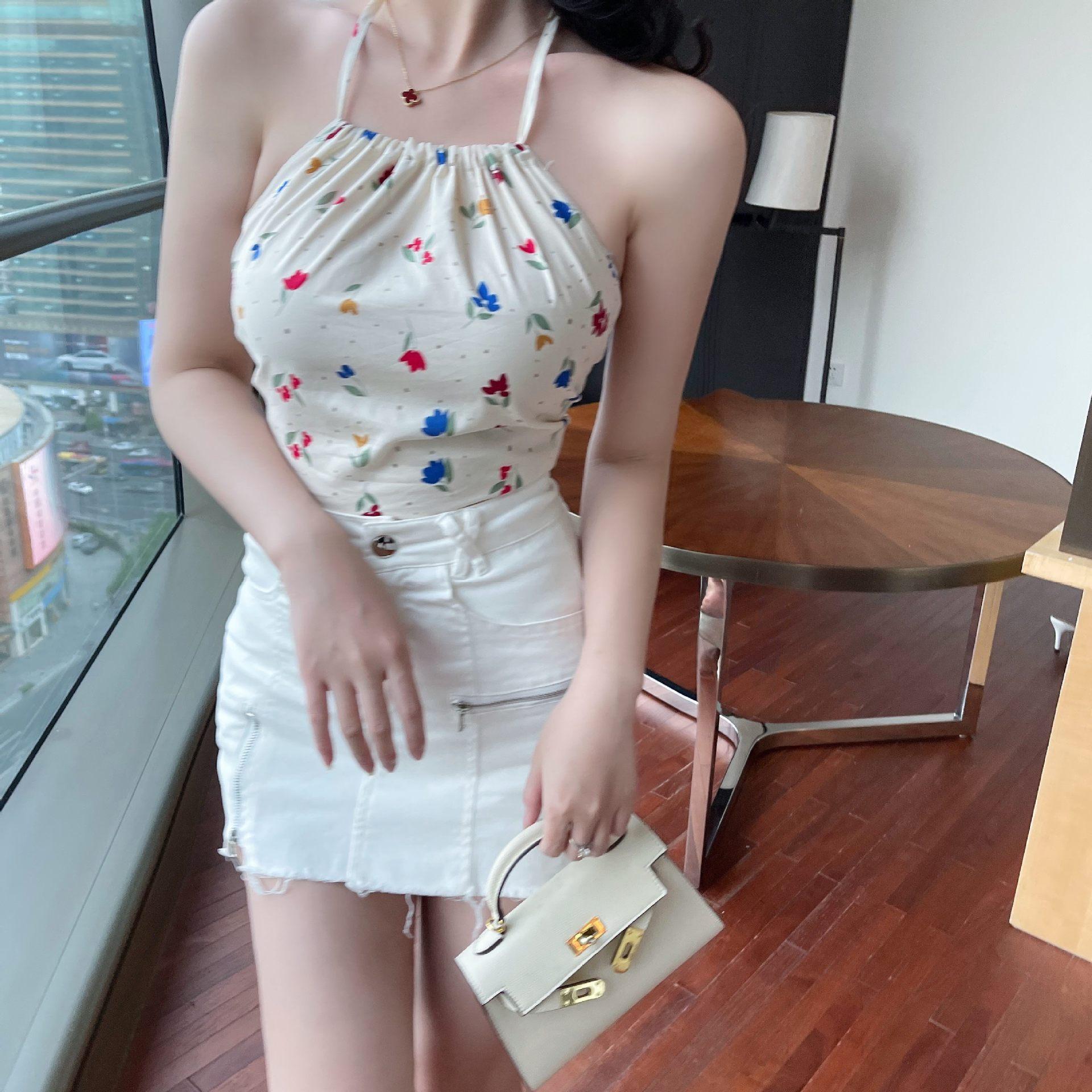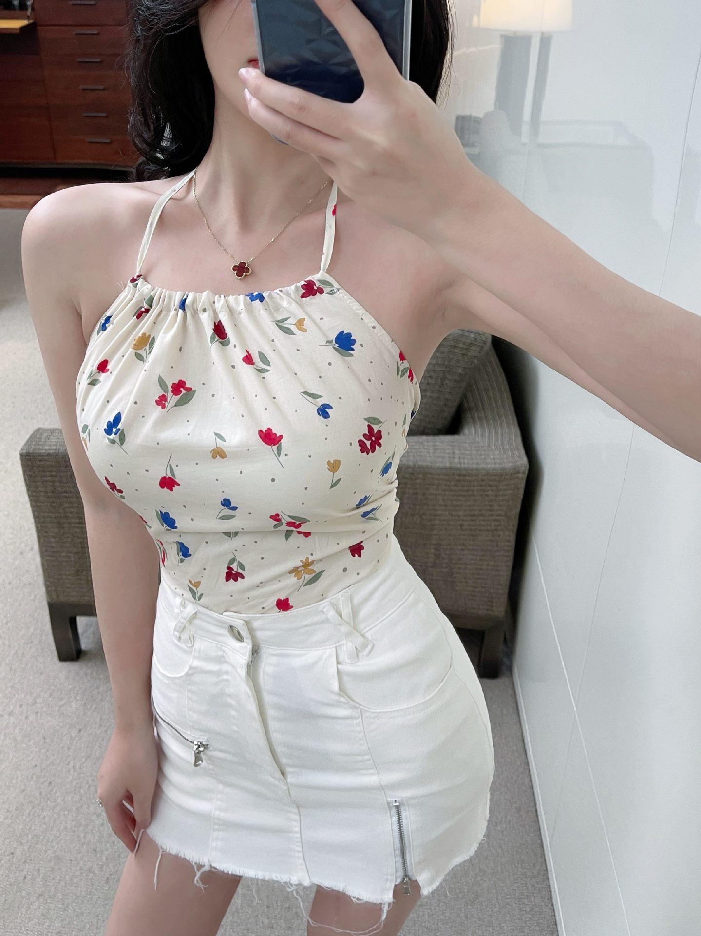 Chaleco de verano con lazo sin espalda y flores pequeñas, con cordón ajustable, para mujer, 2024