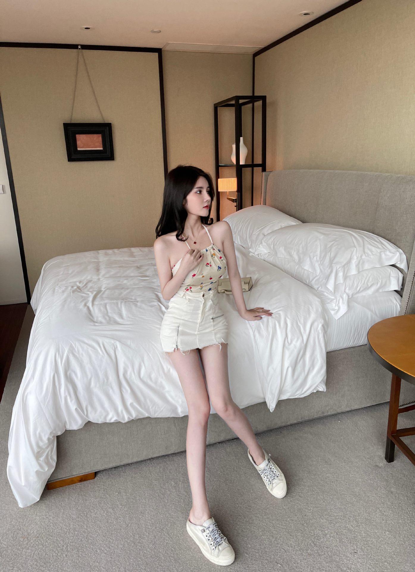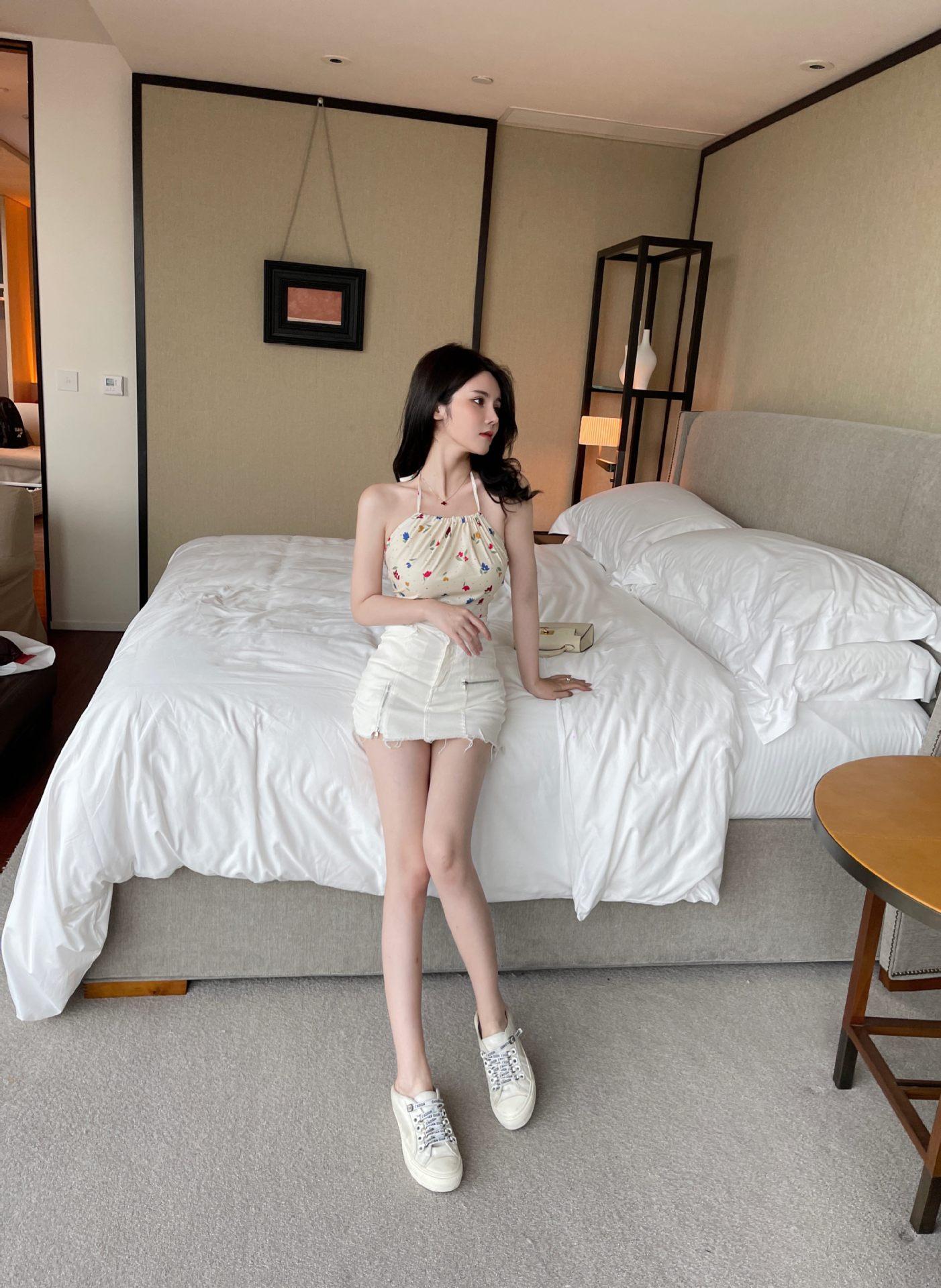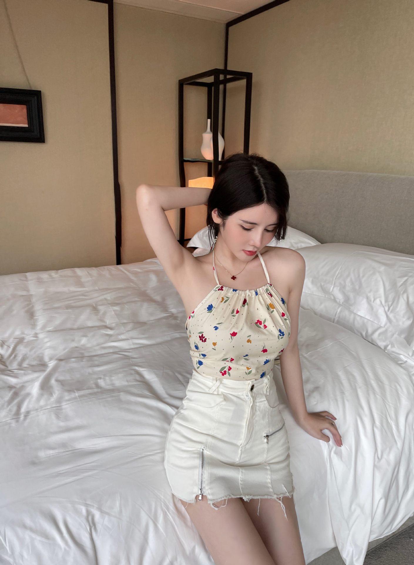 Chaleco de verano con lazo sin espalda y flores pequeñas, con cordón ajustable, para mujer, 2024