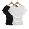 Camiseta de rayas vintage europea y americana para mujer, novedad de verano 2024, cuello en V, cintura alta, corte entallado, manga corta