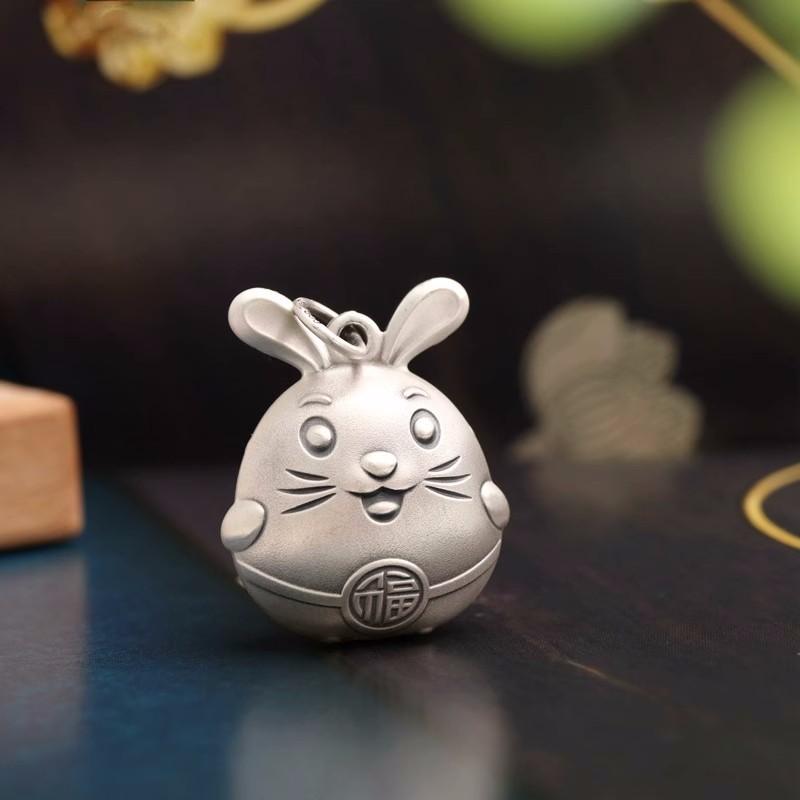 Colgante de Plata Pura suministros año animal doce Zodíaco lindo conejo de la suerte unisex artesanía esmerilada productos de plata esterlina