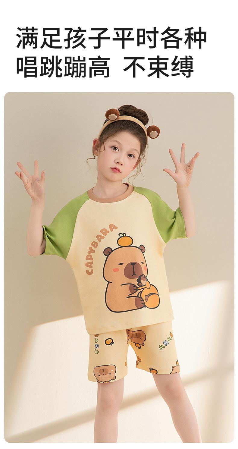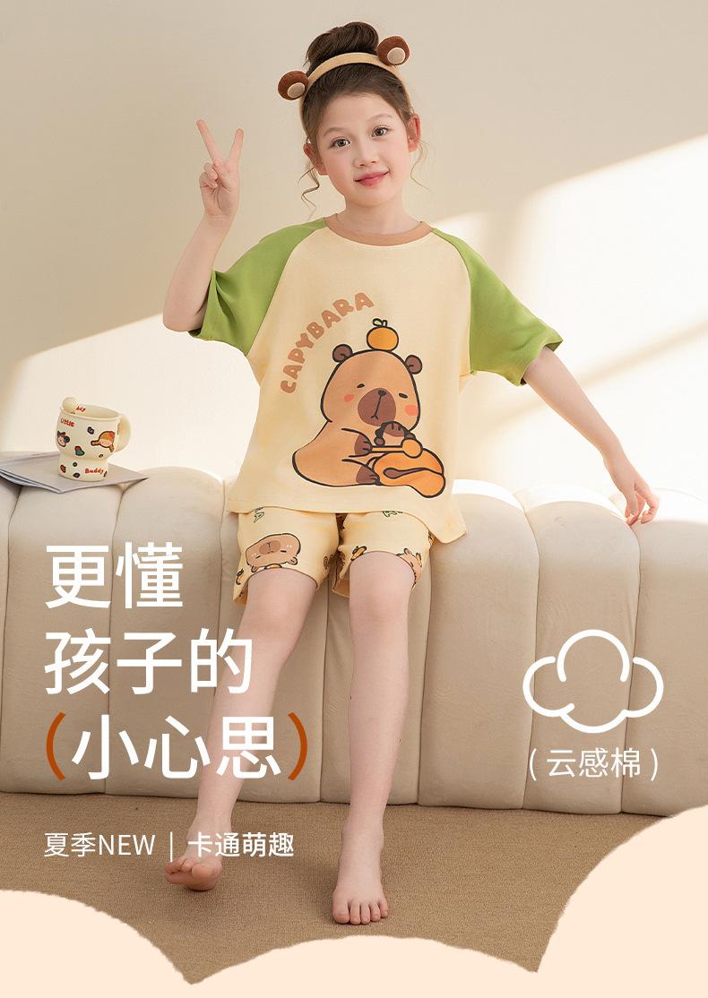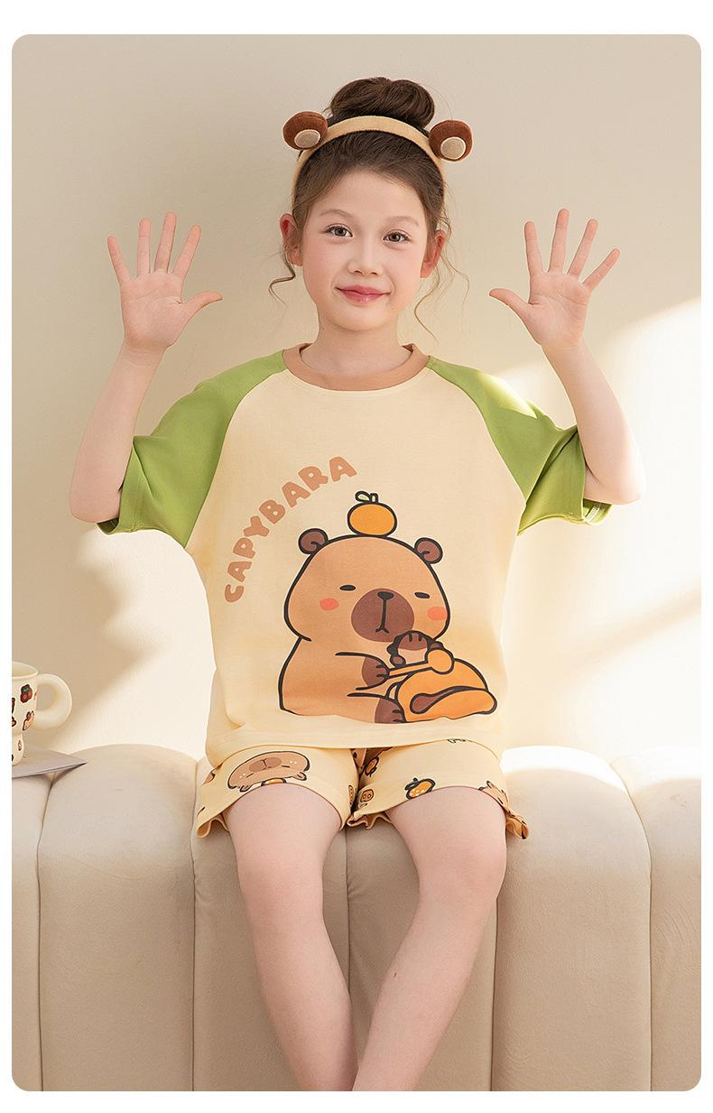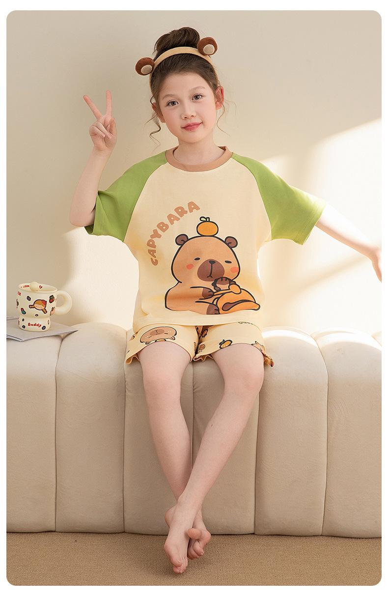 Pijama de verano para niñas, de algodón puro, fino, con dibujos animados, de manga corta, para niñas de talla mediana y grande.
