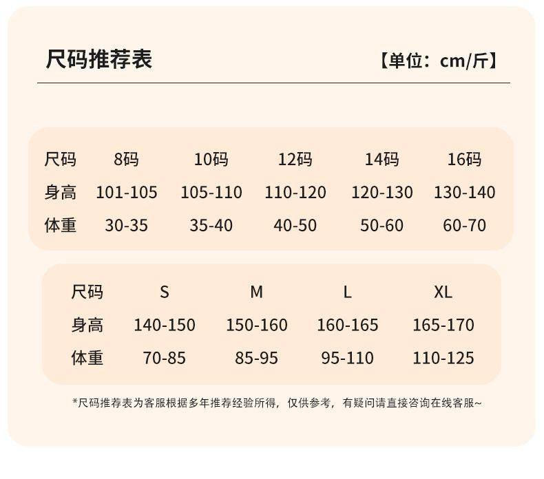 Recommended height for size 8 is 101-105cm, Recommended height for size 10 is 105-115cm, Recommended height fo...